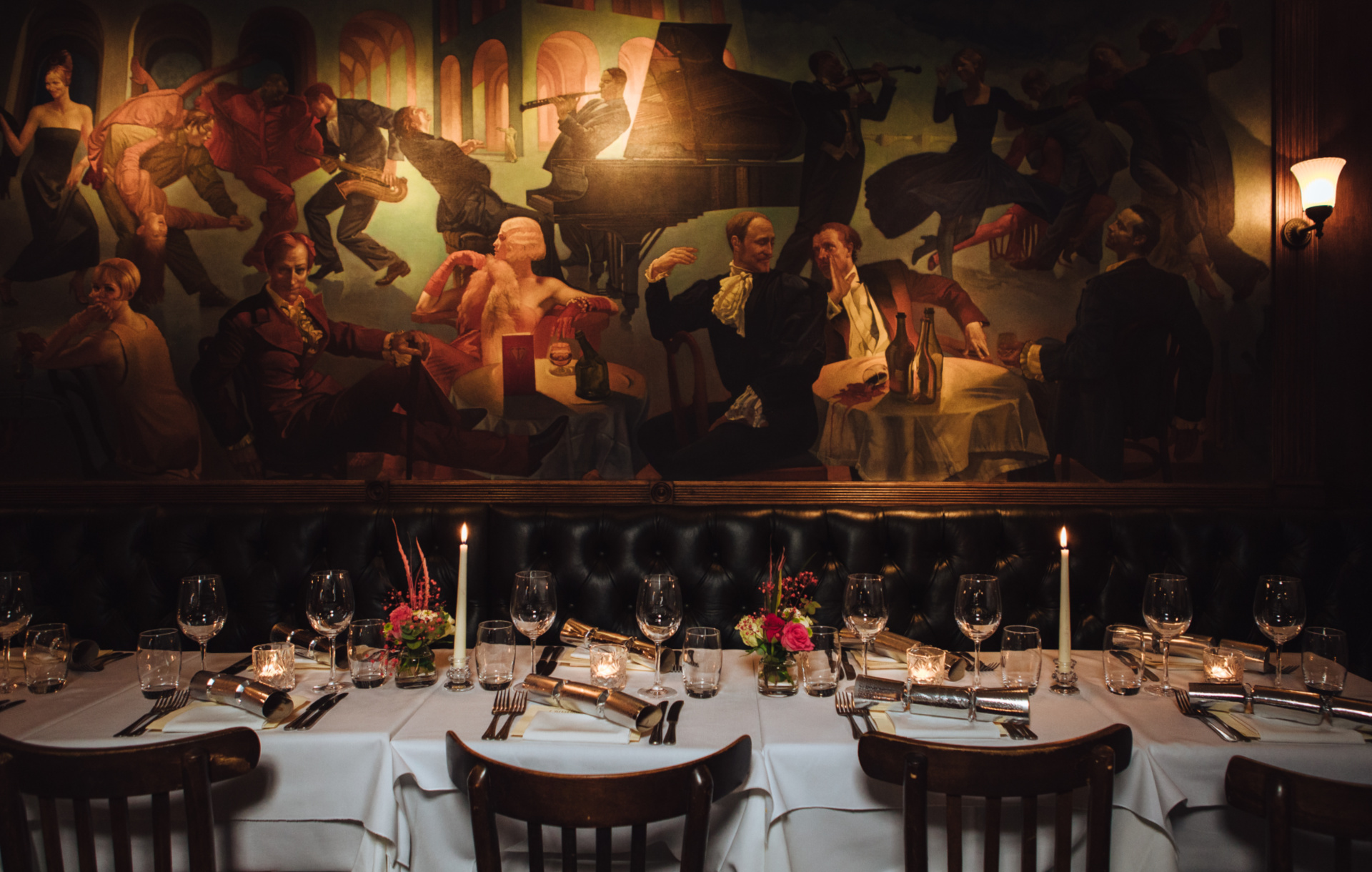 This restaurant is chef-owned and chef-beloved: the food is glorious. We eat batter-fried courgette ribbons with parmesan and lemon (£8); pan-seared foie gras with roasted cherries and toasted brioche (£25); grass-fed sirloin with roast potatoes, carrots, turnips, thyme jus, Yorkshire puddings (£25 again, and I would have paid more); rare rib-eye steak with tarragon butter and frites (£32); home-made toffee ice-cream with pecans, honeycomb and toffee sauce (£8); seasonal fruit pavlova with vanilla whipped cream and a berry coulis (£8).
