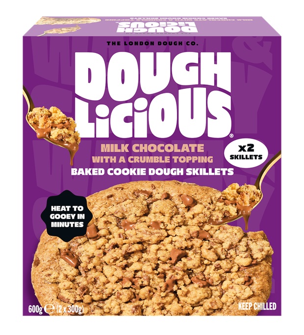 Available now in Milk Chocolate Chunk, the Doughlicious Skillets deliver a perfectly feel-good, indulgent experience: crisp on the outside, irresistibly gooey in the centre, and designed for effortless spooning. The crunchy crumble topping delivers a unique texture contrast that sets it apart from anything else currently on the market.