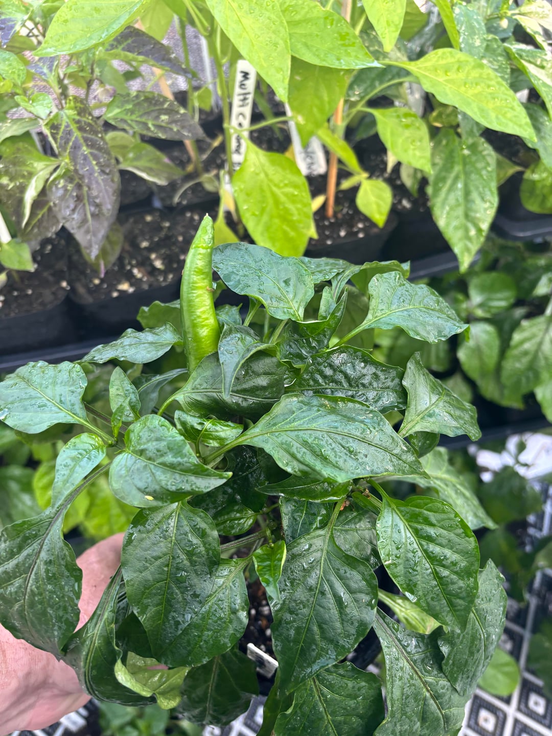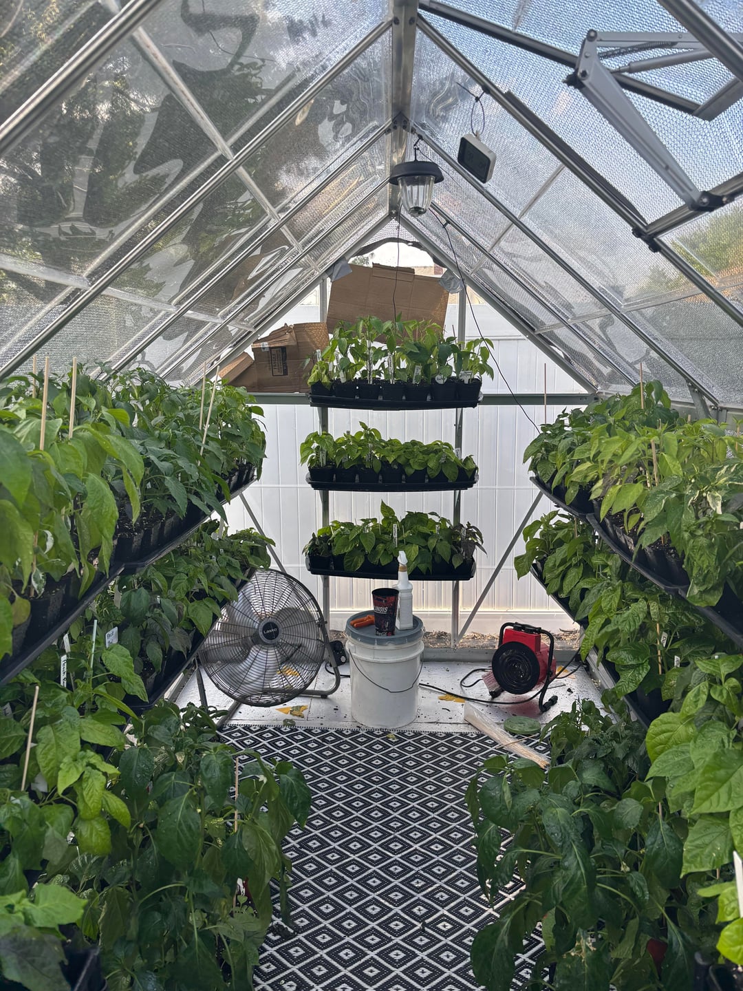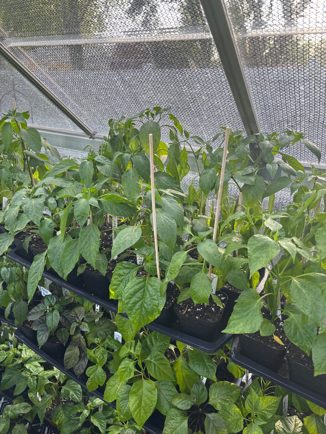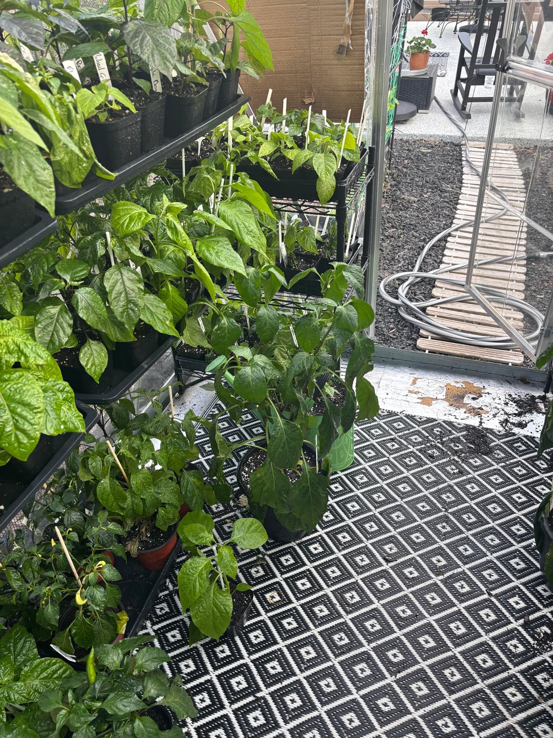 Here is my daily update. Plants are looking good. I even found a pepper on my Pueblo chili plantby Rare_Yam10 7 Comments plantymom3 22 hours ago No, but I am super jealous of that greenhouse. 😭 carnitascronch 22 hours ago NO please post more! MarylandPeppers 21 hours ago Not tired of it yet I love the greenhouse and that flooring CapsicumINmyEYEBALLz 21 hours ago  Crazy-Emphasis-4362 21 hours ago Nice Pepper Geek shirt!! vapemustache 20 hours ago No but only if you’re also not tired of seeing mine. 👉🏻👈🏻 Washedurhairlately 20 hours ago