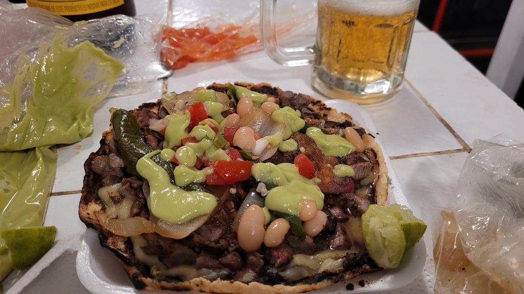 Share Facebook Twitter Pinterest LinkedIn Reddit It is a big sope style gordita tortilla, a little crispy, with asiento (rendered pork fat), chihuahua cheese, carne asada, and all the fixins. Riquisimo! by rundabrun Dining and Cooking