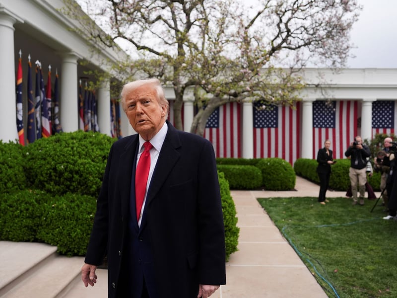 President Donald Trump departs after signing an executive order at an event to announce new tariffs in the Rose Garden of the White House, Wednesday, April 2, 2025, in Washington. (AP Photo/Evan Vucci)