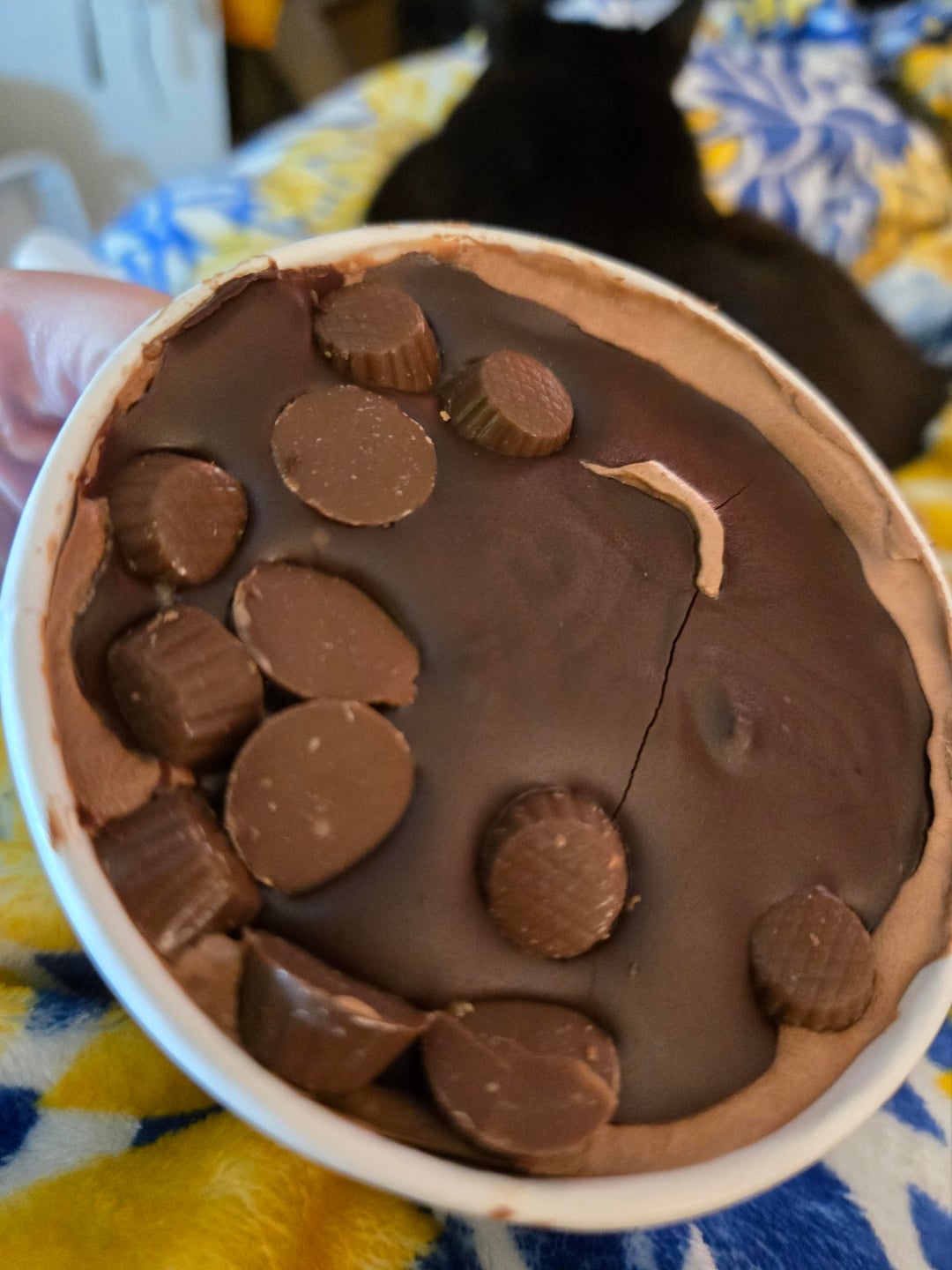 The top chocolate with caramel cups is strong, melty, and sweet. The caramel in the cups is overpowered by chocolate flavor.