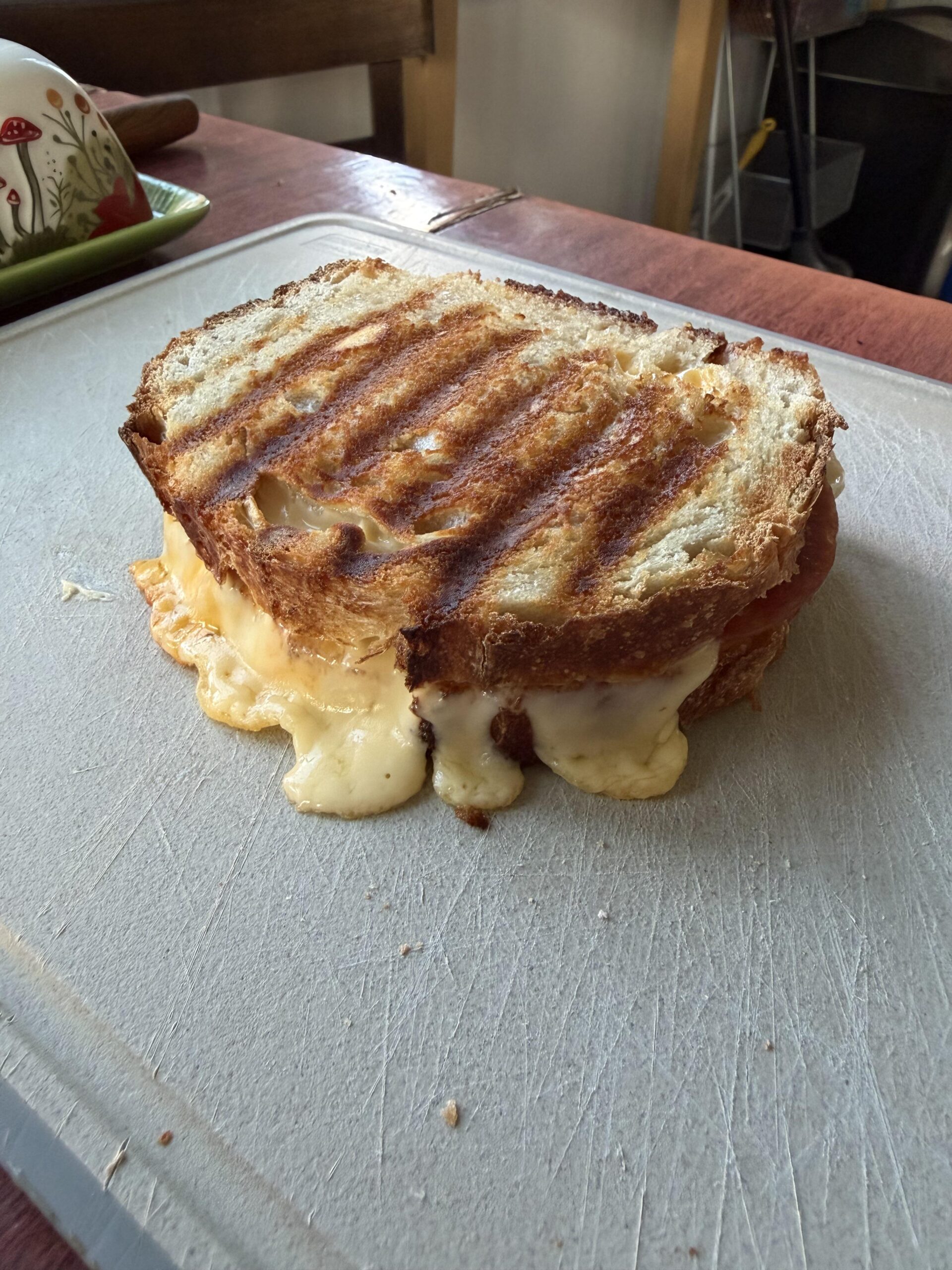 So picture perfect a grilled cheese spilling out of the sides onto a chopped up cancer board to pick up maximum microplastics