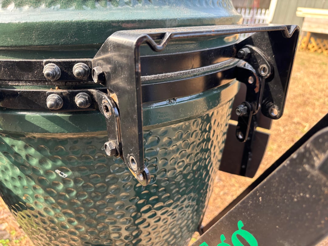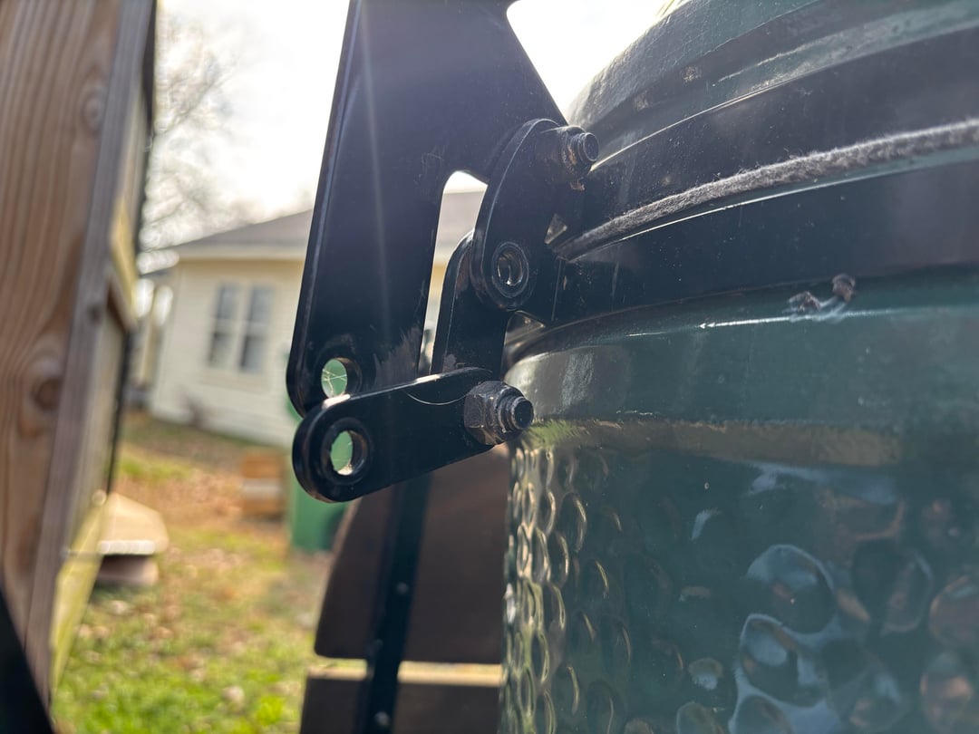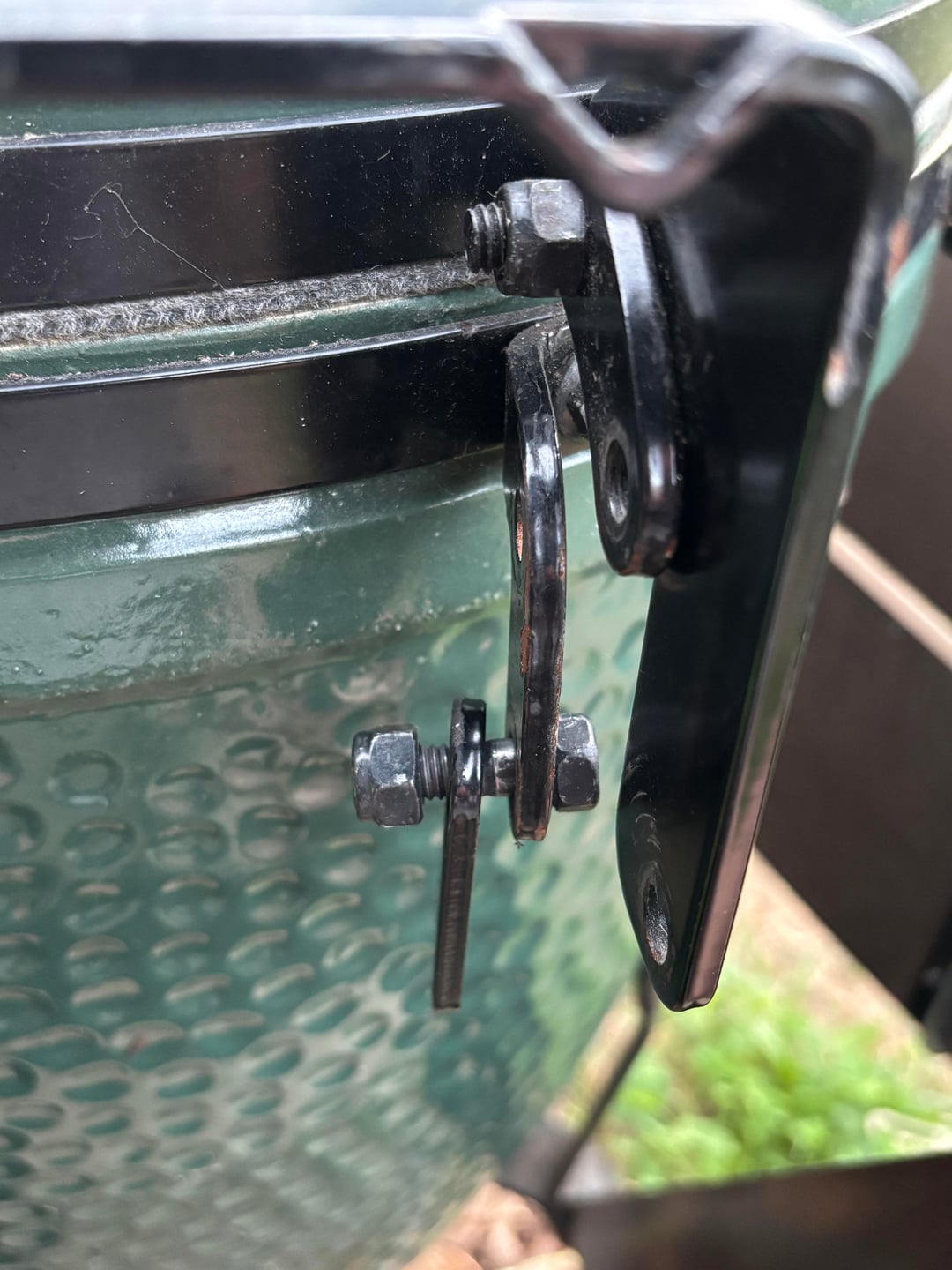 A friend recently gifted me a big green egg that she rarely used. I need to re attach the lid but it looks like I might be missing some pieces? Any help is appreciated!