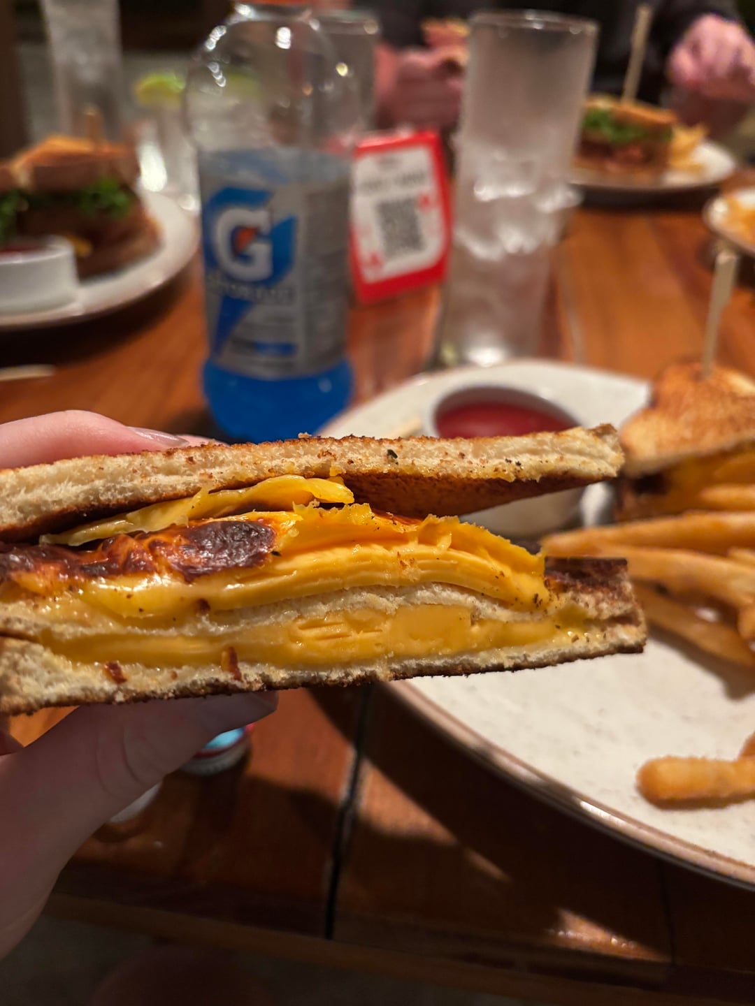 I like how the cheese got the burnt crispy bits but looks like they used too many slices as it didn’t cook through. Maybe they should’ve used a cover on the pan to heat the whole sandwich better.