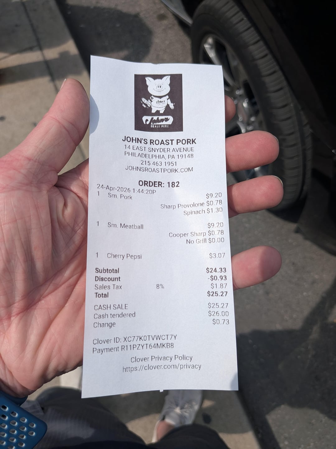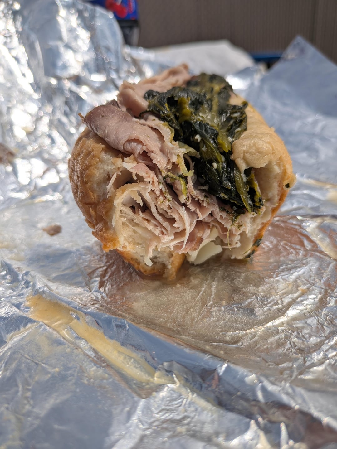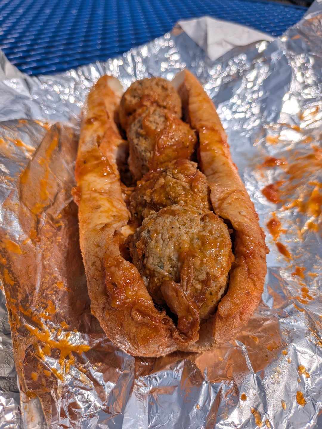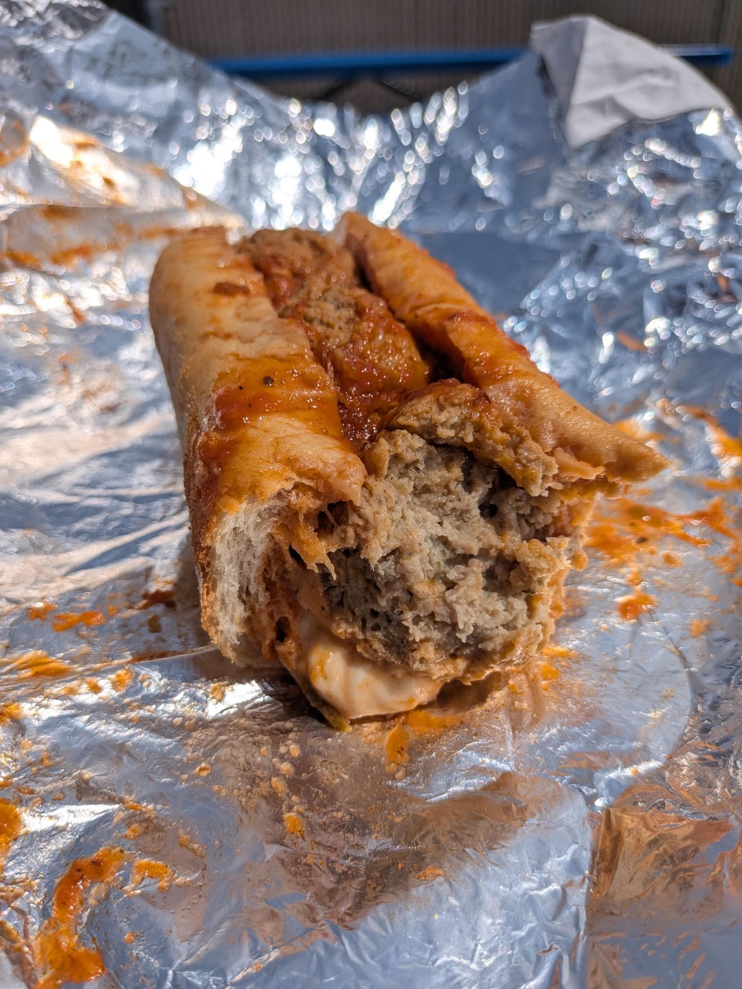With surprise meatball!!! Their steak is number one in my book but I decided to switch it up today and try their meatball. I wasn't disappointed. The meatballs were tender and flavorful and then you got the melted Cooper cheese underneath at the bottom after your first bite. Red sauce is top tier, I get it on my steak Milano. The roast pork was A+ always but this one was a little slippery on the outside. Still a great lunch. Gonna go take a 3 hour nap.