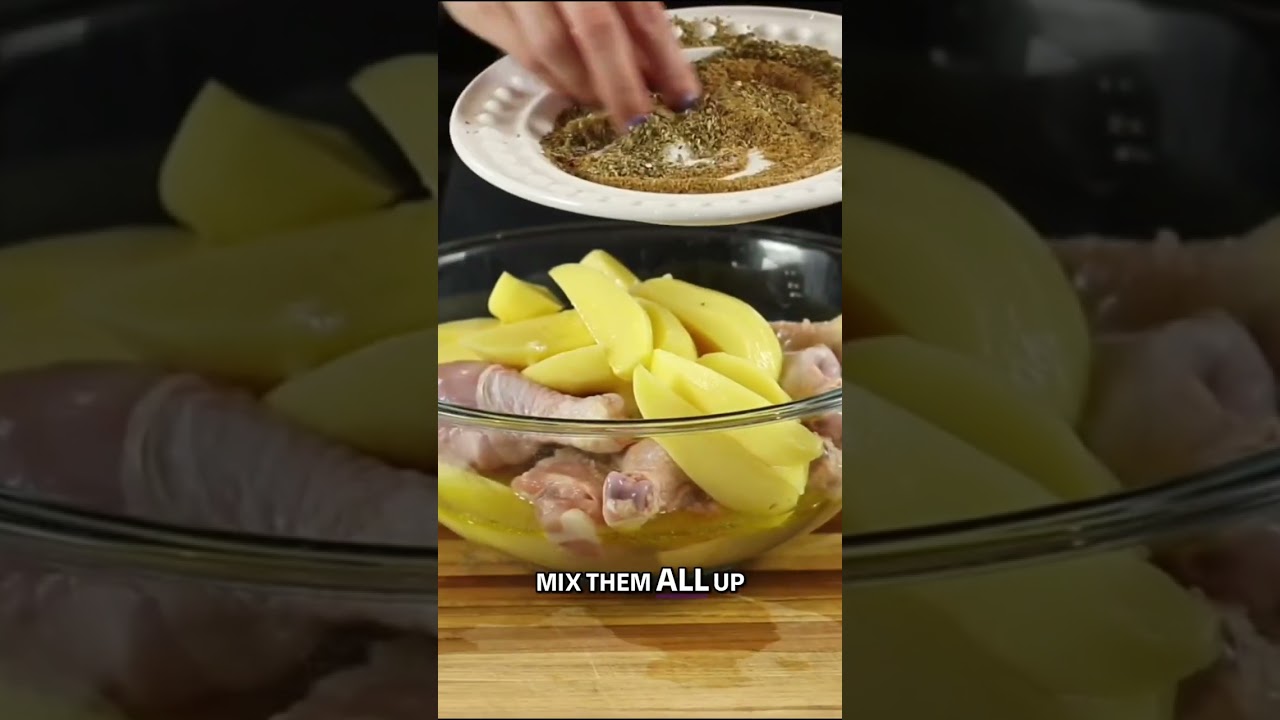 – Toss chicken + potatoes with marinade