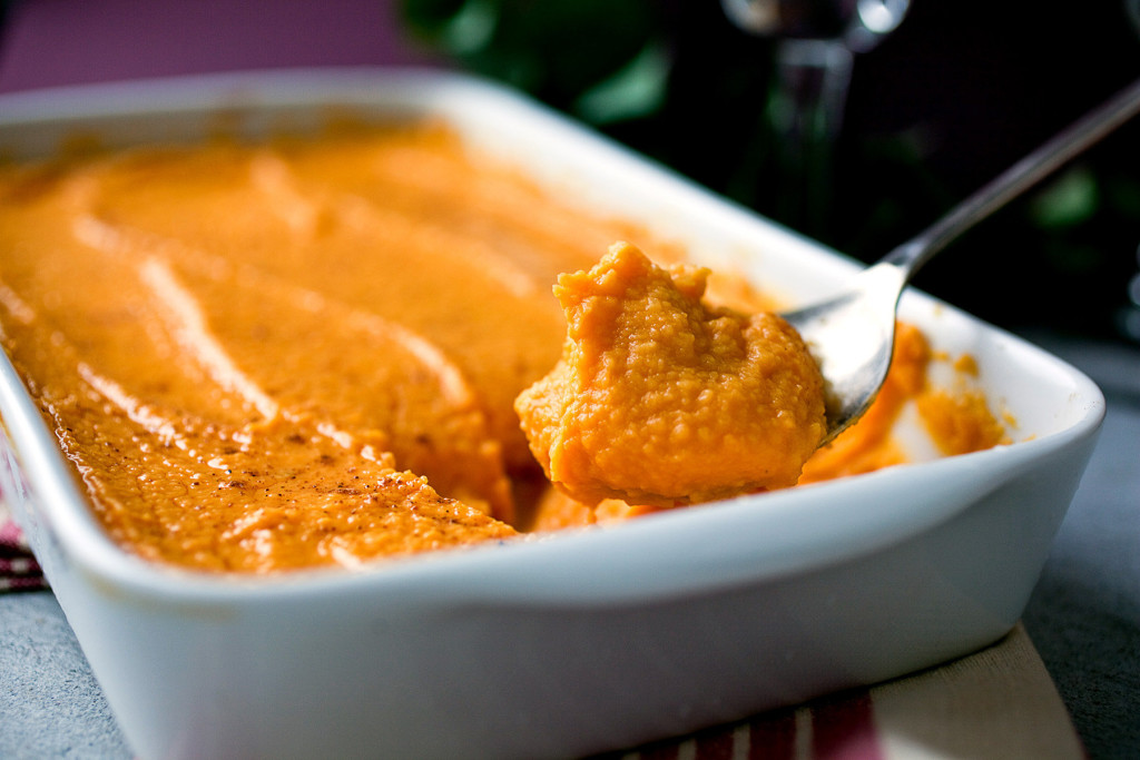 This mixture of sweet potatoes, savory pumpkin and tart apples is a variation on my sweet potato puree with apples. For the best flavor, I suggest you make it a day ahead.