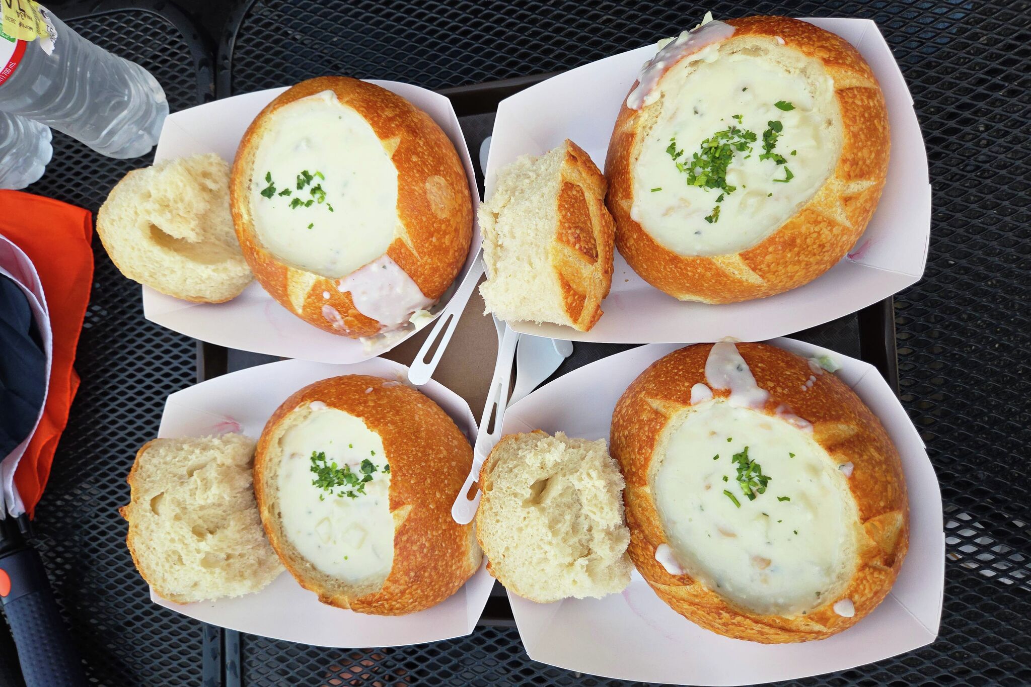 I had some family in town that had a hankering for clam chowder in a bread bowl, specifically from Boudin Bakery on the Wharf. The chowder was exactly as I imagined: creamy, distractingly fishy and flecked with chewy bits of clam. The bread was soft, if a bit dry, on the inside, while the exterior maintained a chewy skin. Although I can’t recommend the food, watching a gaggle of children gnaw on the ends of the edible bowls like caterpillars almost made the thing worth it. Sadly, the bakery was out of animal-shaped breads — no crocodiles, crabs or bears.