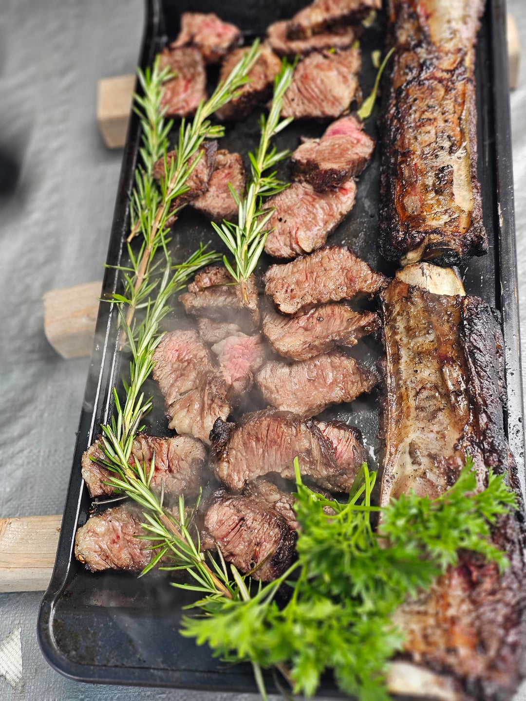 this doesn’t look bad but it doesn’t really resemble korean barbecue either. cuts of meat are waaaaaay too thick and as mentioned the herbs are baffling