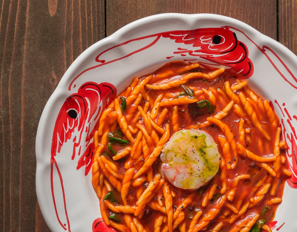 Signature handmade tagliolini with carabinero prawns at Involtini. (© Takki/Involtini)