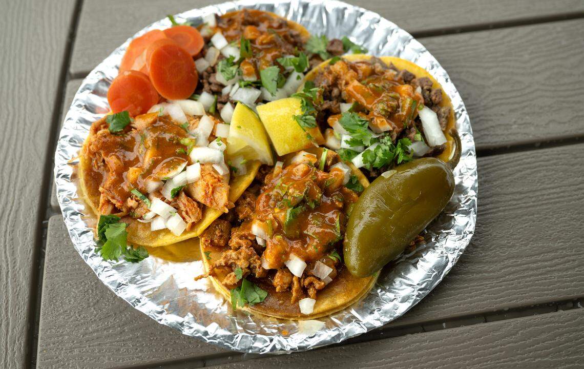 Tacos from Tony’s Tacos at La Plazita Montes food truck plaza in Salida, pictured Wednesday, April 22, 2026.