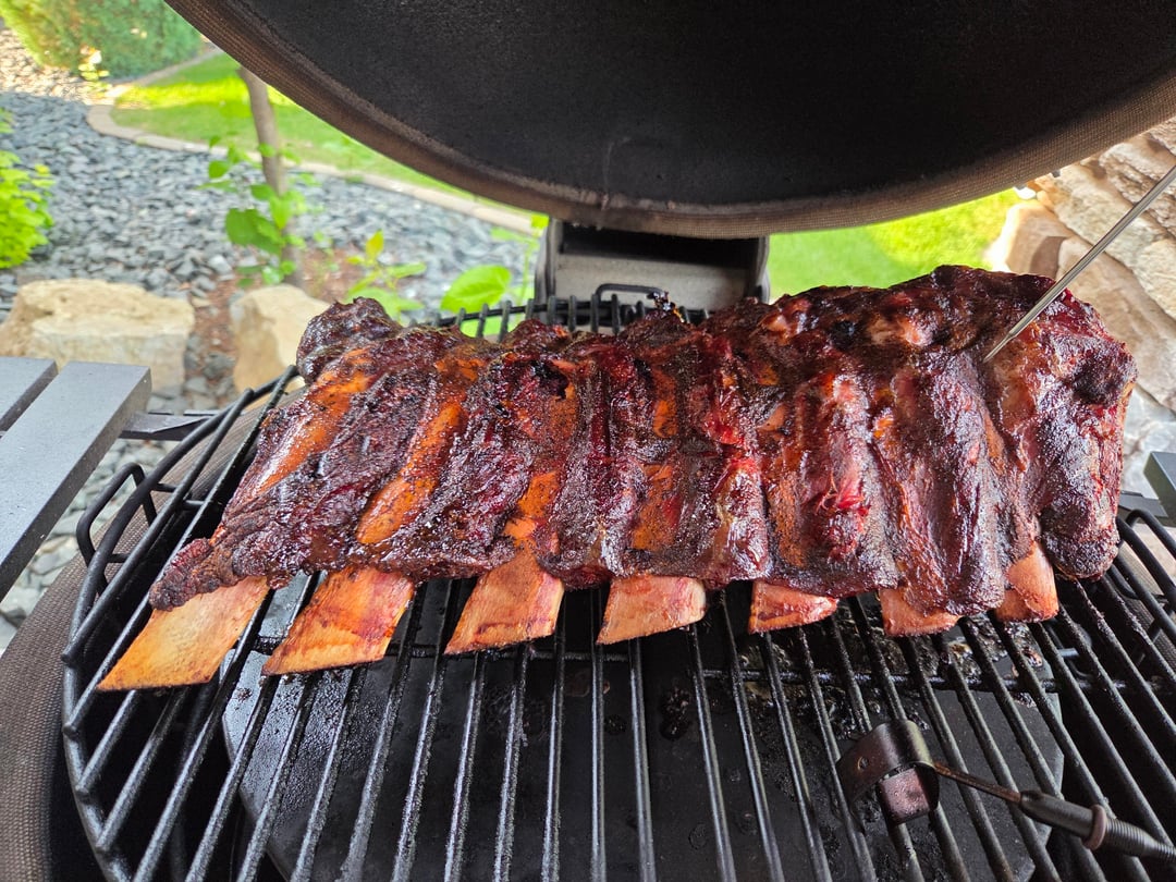 Nothing like ribs on the KJ. First time doing them, was really impressed with how they turned out. Thank everybody who's posted tips and recipes on here. Smoked at 225-250 for about 6 hours. Used a mustard binder with spg+paprika+onion powder. Smothered in BBQ sauce a couple hours in and again at the finish. They came out incredibly tender and melt in your mouth, looking forward to a summer full of BBQ. Definitely will be doing these again!