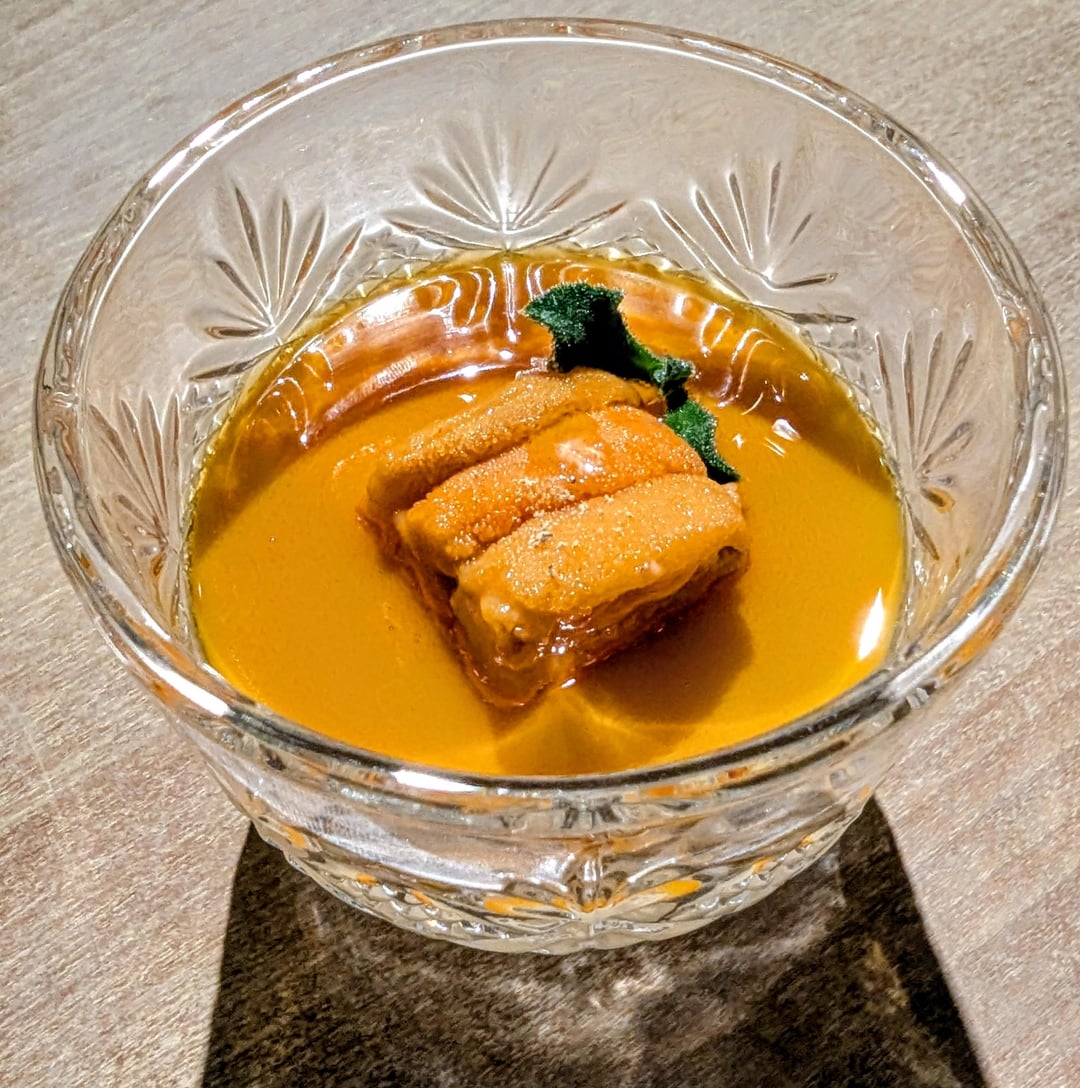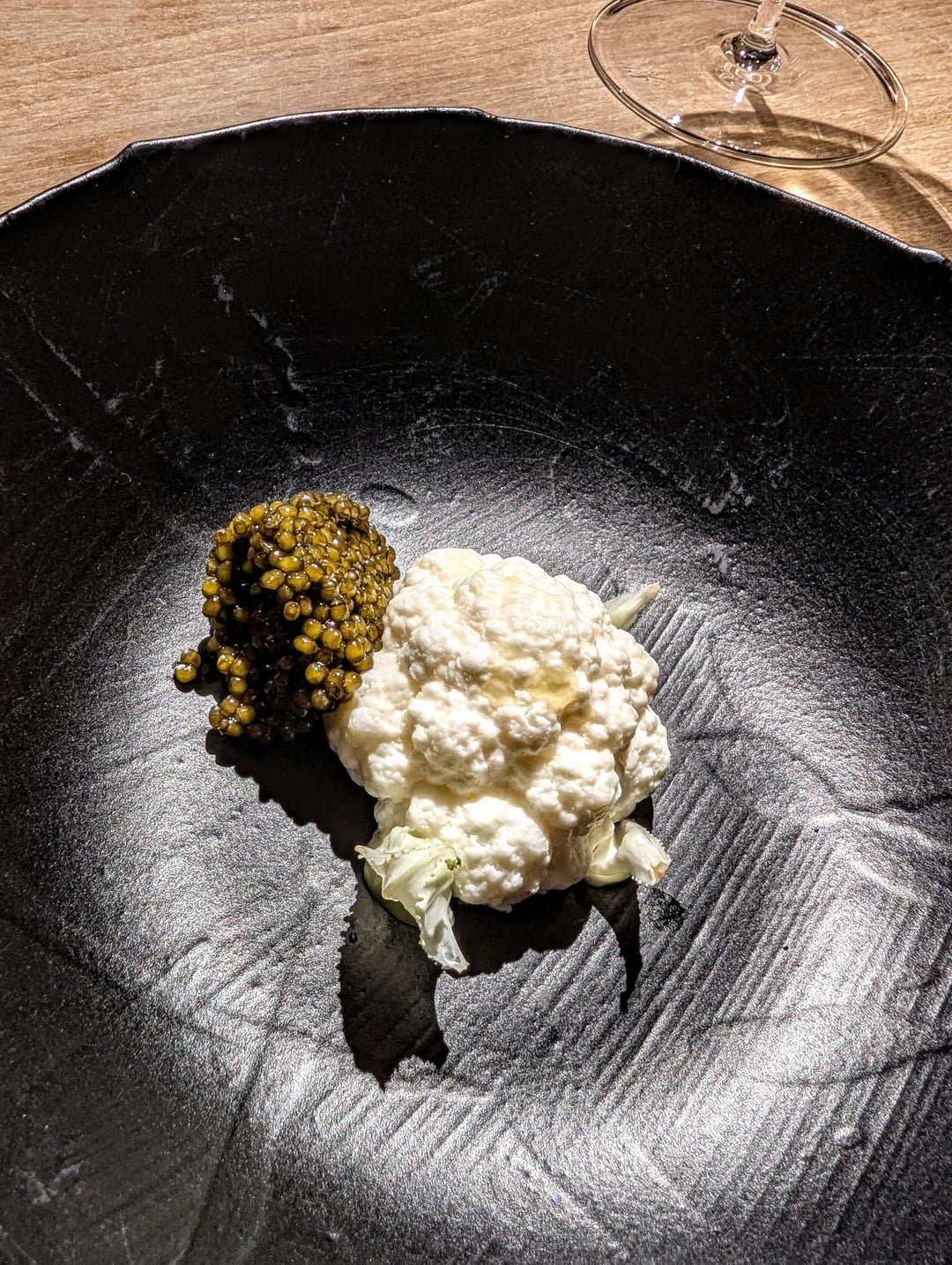 The highs were the cauliflower (truly amazing dish), the "cheese" walnut dish that tasted like an incredibly pungent Roquefort, the crab, the jamon chawanmushi, and the corn dessert. All the components of the turbot were amazing but the fish itself was clearly overcooked and dry. Everything else was good to very good with the exception of the tuna dish, which seemed incredibly out of place and underwhelming. Did not care too much for most of the pairings with the exception of the Chenin Blanc and the Super Tuscan. Service was mostly fun and engaging.
