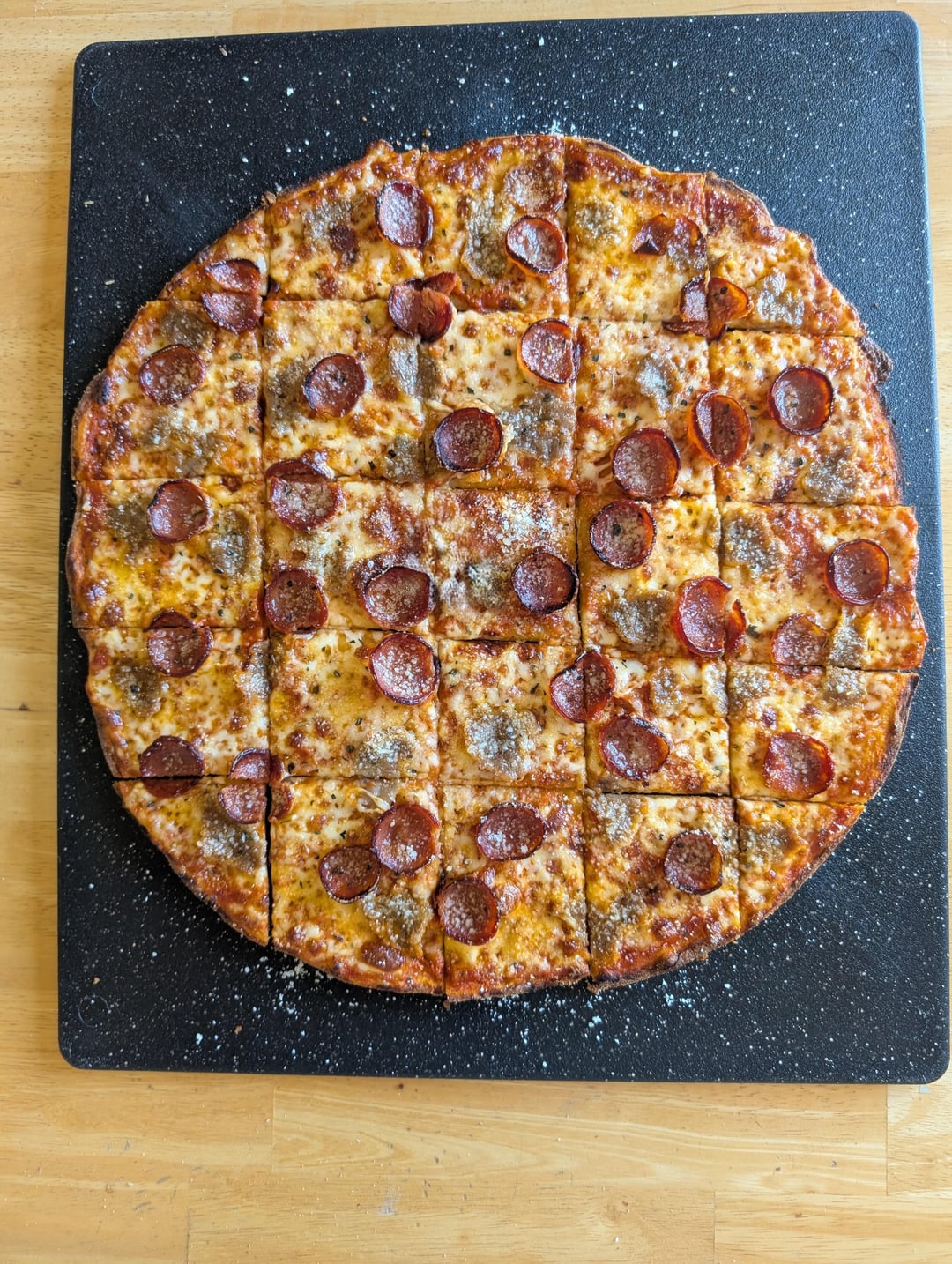 Obi_Wan_Benobi 16 hours ago Thin crust and square cut, it’s perfect. Love the dark edges on the pepperoni.