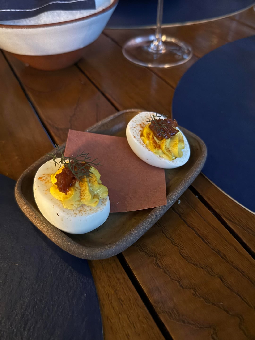 Standouts for me were the deviled eggs which are a perfect example of simple but elevated dining. And the baked Virginia which I didn’t expect to like that much (not big on ice cream desserts) but it was delicious.