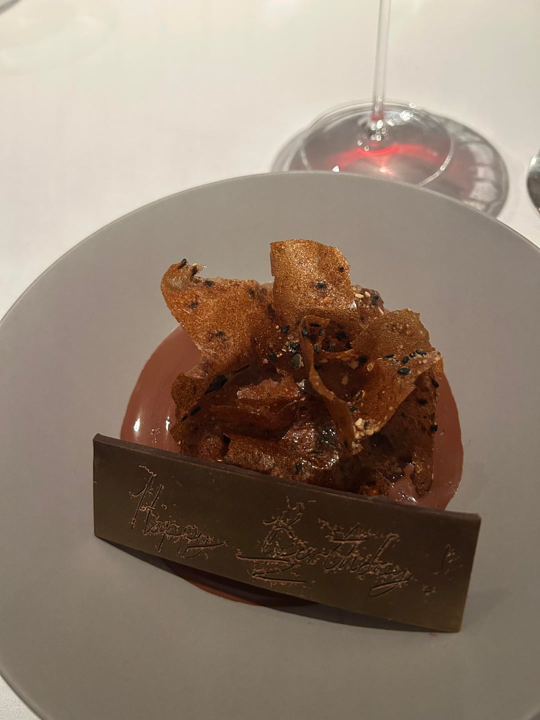 We then had a little trou normand with lemon ice cream and Chartreuse, which was a nice, refreshing reset before dessert. The team kindly let us swap the listed dessert for a chocolate and ginger one, and that turned out to be a great call, rich but still balanced desset.