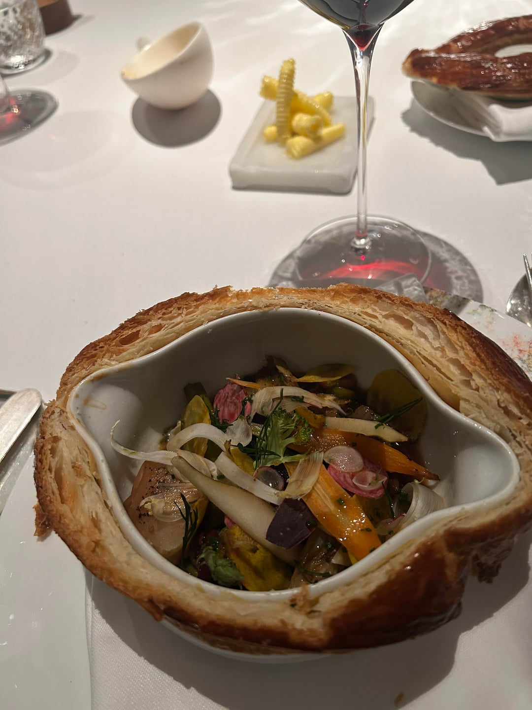 Things kicked off with a few amuse-bouches. The celeriac bouchée was very good, but the standout for me was a pair of mini crêpe sandwiches with cream and lemon zest, it was super light, fresh, and just really nicely balanced.