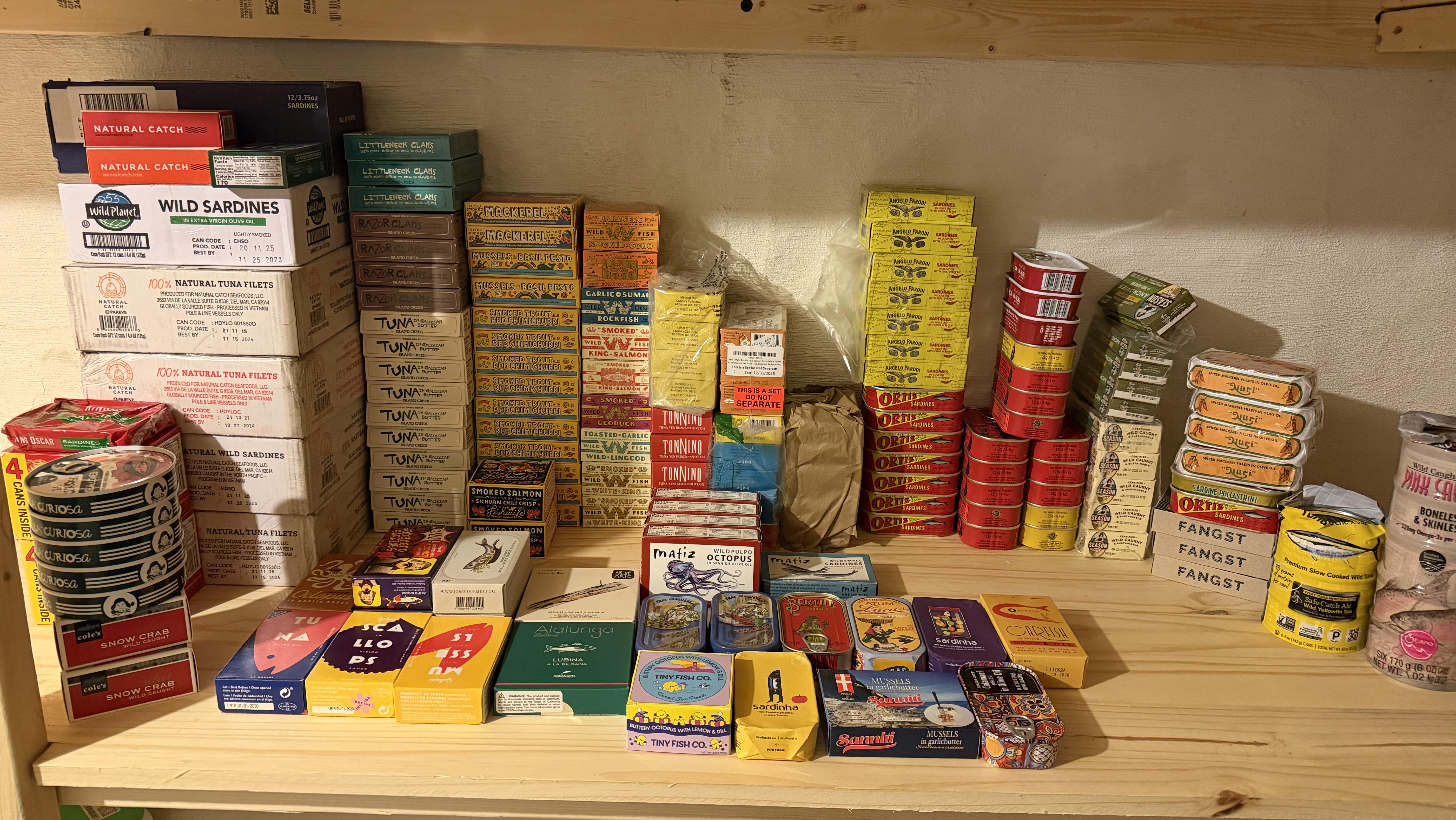 I should probably add that this is over 5 years of accumulation. It all started with an article I read several years back about people who age sardines and how they can actually improve with age. That article sparked memories I had from my childhood when I would get so excited to share a can of sardines with my mother.