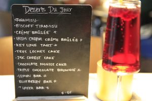 The dessert menu and a a classic French Kir Royale—a simple, two-ingredient cocktail. Photo by Lisa Enos.