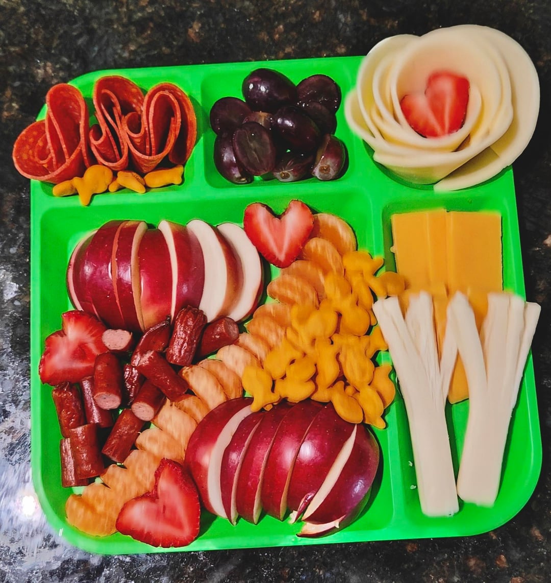 My 5 year old helped me put together a “fancy snack board” for him and his 2 year old sister tonight and I fear I’ve raised the bar too high. It’s literally just goldfish, grapes, strawberries, mandarins, cheese sticks, cheddar, a very serious attempt at a provolone rose (his idea of “fancy”), pepperoni, and turkey sticks—but apparently arranging it like this makes it Michelin star. They’re usually good eaters, but they were extra into it… like pointing at things, discussing options, fully in their charcuterie era. Not sure if this is a genius parenting hack or if I’ve just committed to making tiny boards for the rest of my life 😅