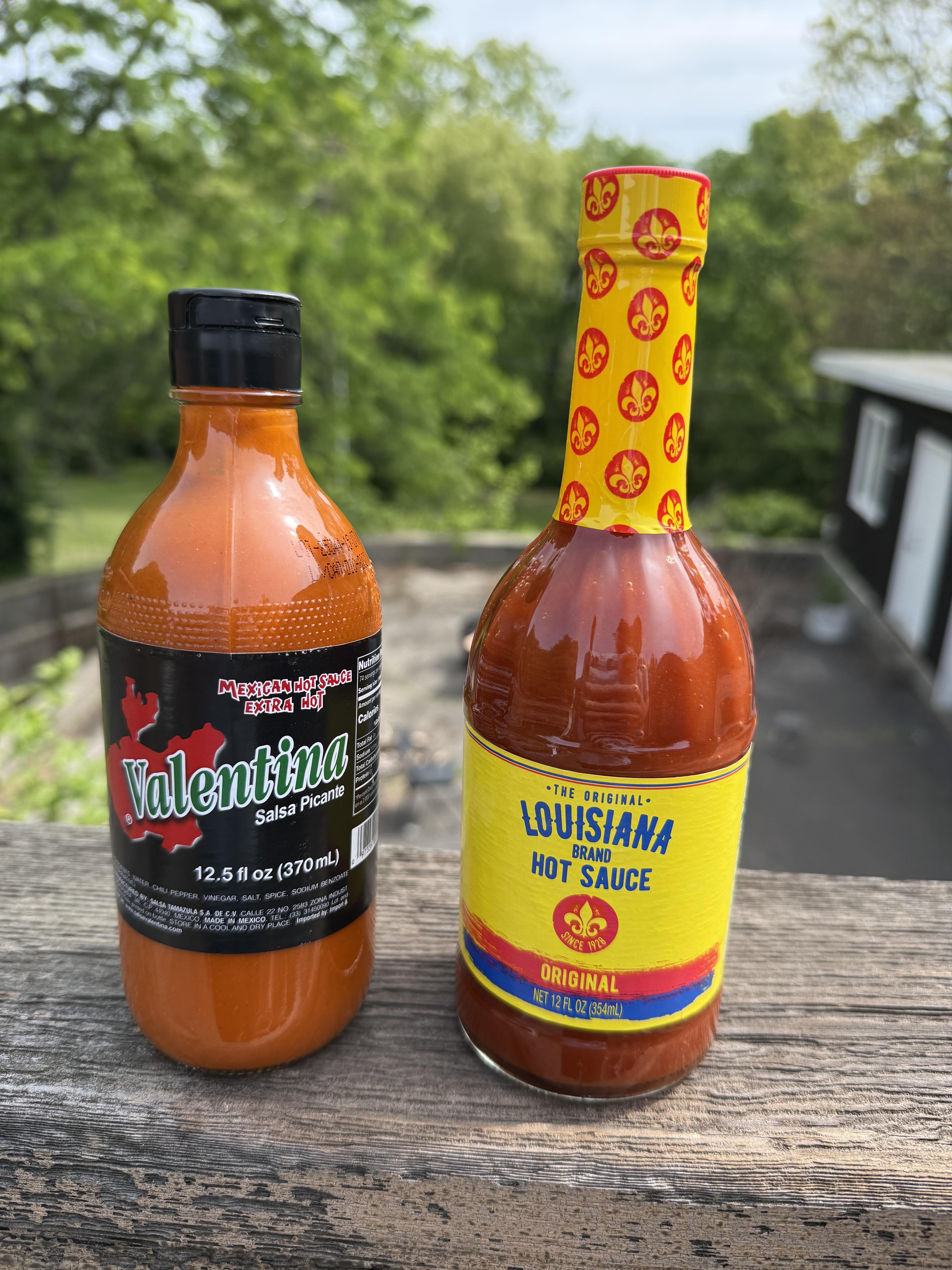 Valentina isn’t necessarily hot but it’s tasty Louisiana is by far the best hot sauce I’ve ever had it’s been my go to since a kid 🔥🔥🔥Valentina reminds of tapatio not really spicy or hot but a mild kick