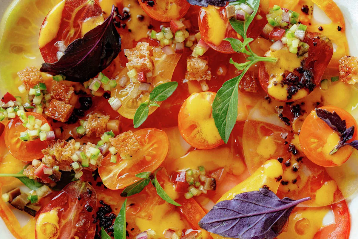 The San Francisco kitchen will mirror the seasonal changes of Tuscany: game birds paired with fruit in early fall, seafood in the winter, baby lamb or hare with vegetables in the spring, nightshades in the summer. Bay Area produce features heavily throughout the opening menu, from roasted Jimmy Nardello peppers in a cooked vegetable salad to Santa Rosa plums with dry-aged duck. Many dishes will have some service flair, from sauces poured tableside to a sugar-dusted orange sheet cake cut at the table.