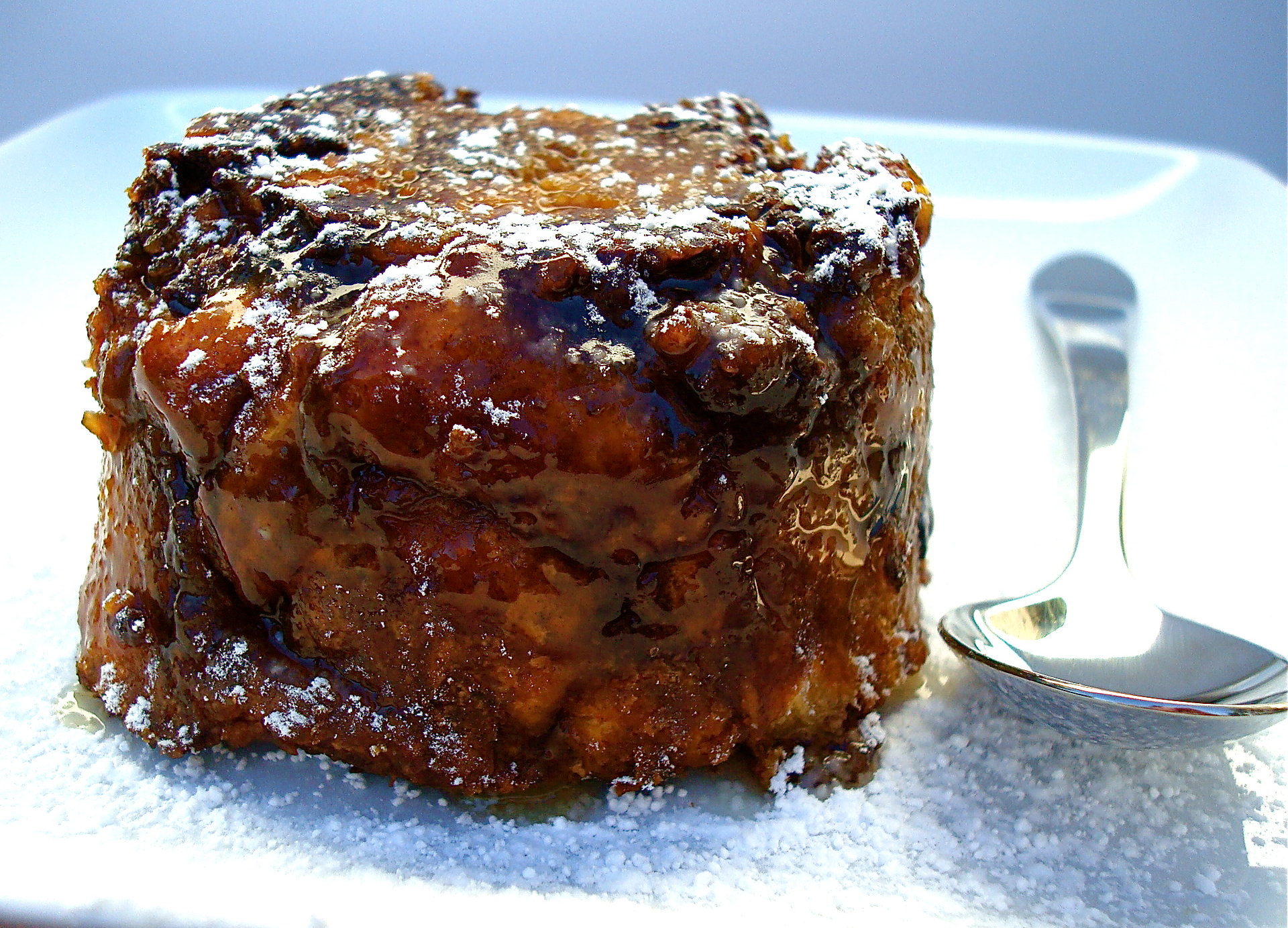 - Bake for 25 to 30 minutes, until top is lightly browned. If using ramekins: Let the pudding cool a few minutes, then carve around the edges with a knife to loosen and unmold. Garnish with powdered sugar if desired and serve warm. If using a 9-by-13 baking dish: Let the pudding cool a few minutes before serving. Cut into portions, then garnish with powdered sugar if desired and serve warm. The pudding can be baked right before serving or earlier that day and then reheated for 8 to 10 more minutes right before serving.
