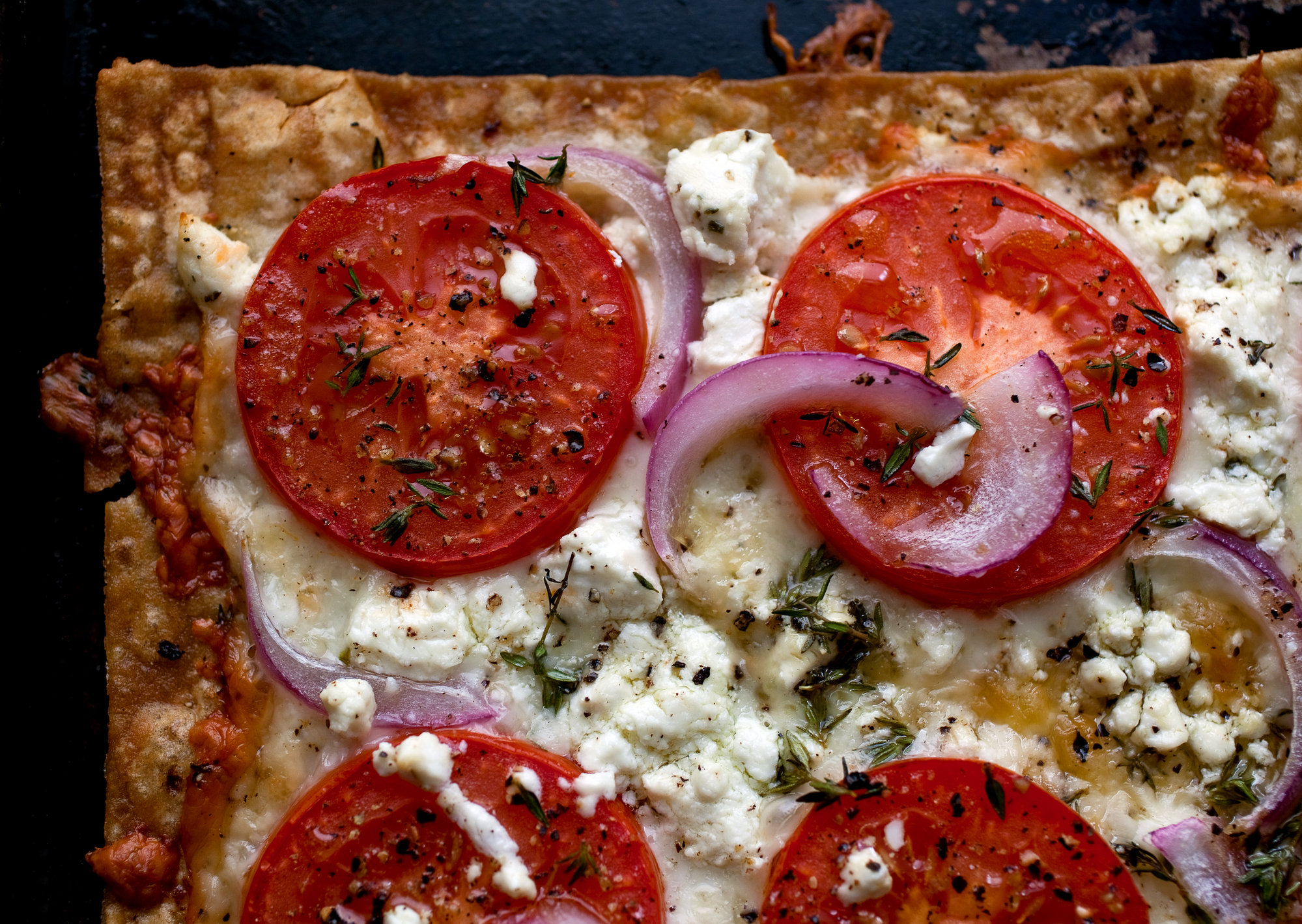 For the lavash pizza with tomatoes, mozzarella and goat cheese