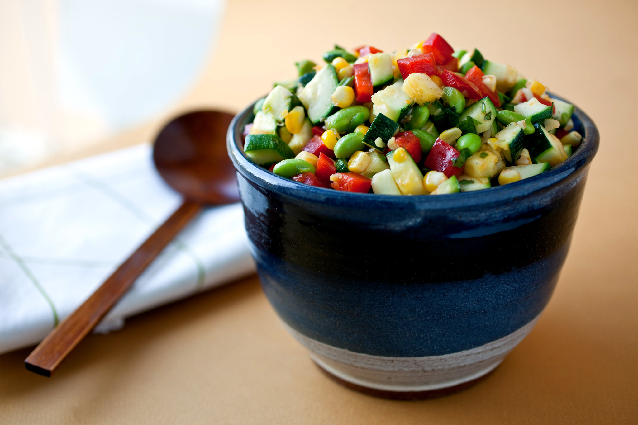 While we’ve still got corn and peppers aplenty, make this Asian version of the American classic succotash. I love the combination of sweet and seared flavors in this dish.