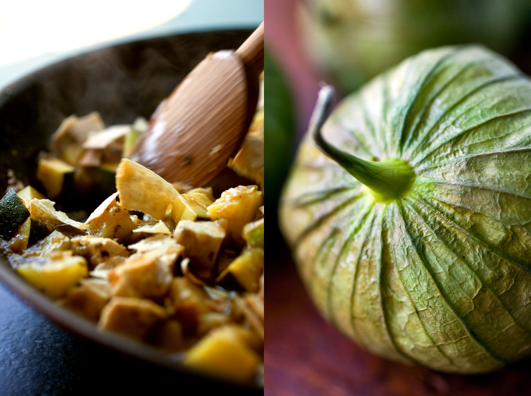 Of all the dishes I make with tomatillos, this one counts as the greatest comfort food. You can toast the tortillas in a microwave: zap them for one minute at 100 percent power, and turn them over and zap them again. Repeat until they are crisp and brown, then break up into large pieces.