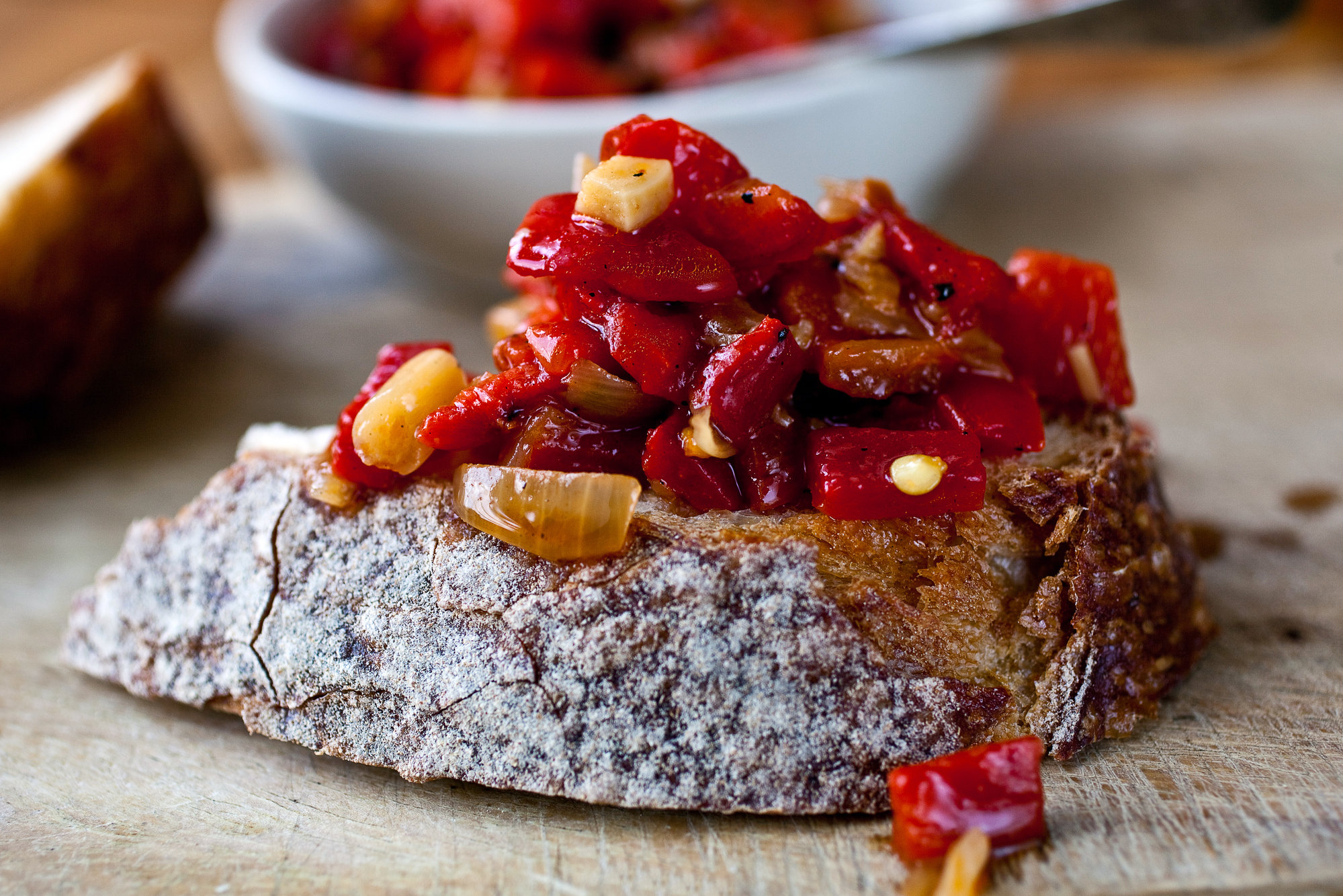 The flavor in this sauce is deepened by peppers, which are first grilled or roasted, then cooked in olive oil with onion, garlic and chili flakes.