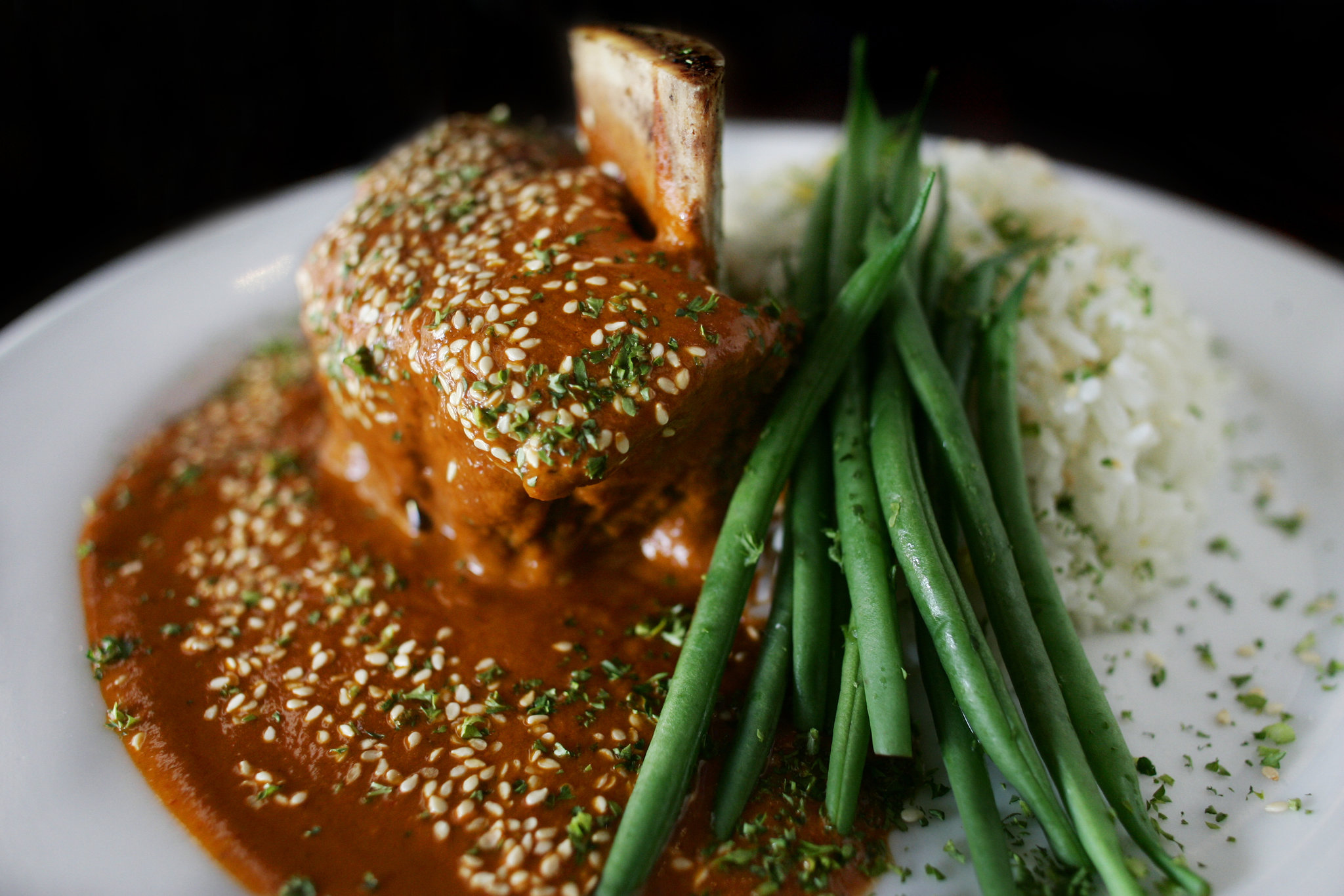 The earthy, fruity, spicy, though not especially fiery “little red” mole — one of Oaxaca’s seven classic sauces — is cooked separately and seared onto the ribs at the end to form a savory crust.