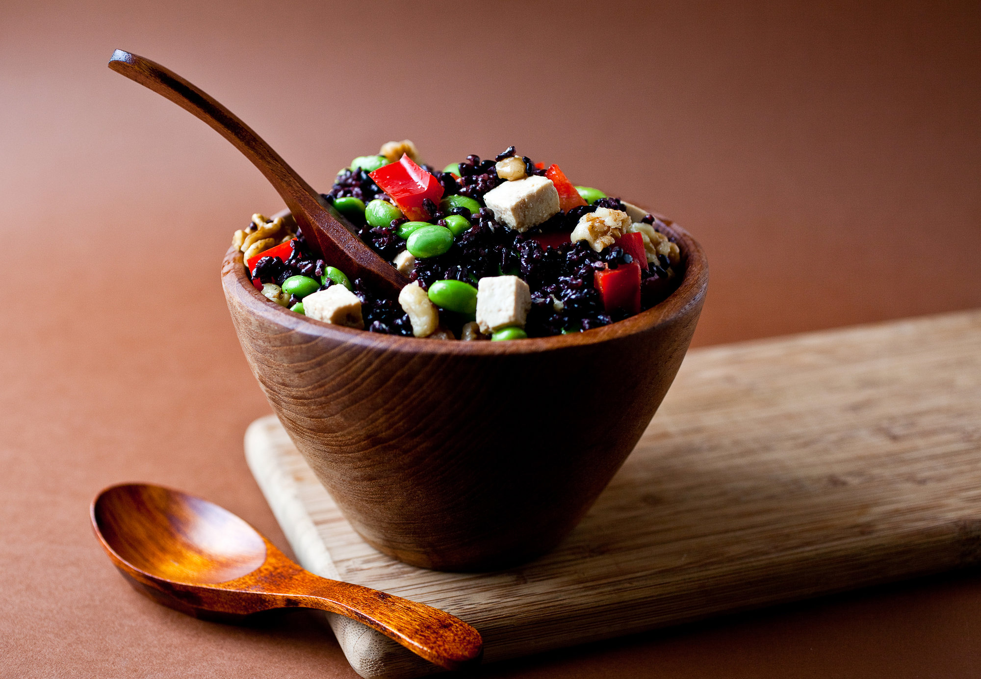 I’ve made this salad with Chinese black rice and with Lundberg’s Japonica, and both work well. It’s a salad high in omega-3 fatty acids and plant proteins — contained in the tofu, edamame and rice — and it packs well in a lunch box. Whichever type of rice you use, just follow the cooking instructions on the bag.