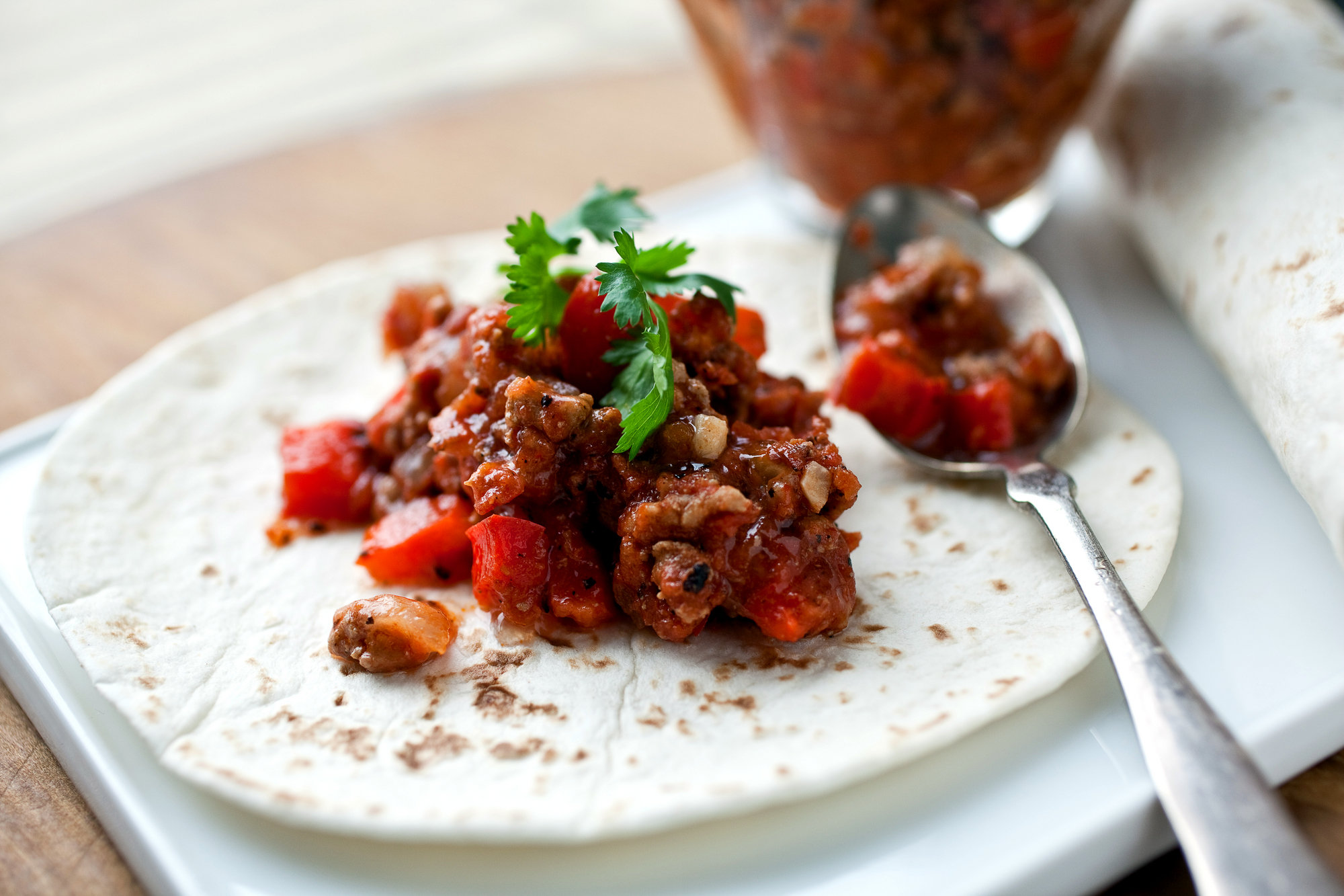 - Stir in the puréed tomatoes and vinegar, and bring to a simmer. Turn the heat to medium-low, and simmer uncovered, stirring often, until the tomatoes have cooked down and caramelized slightly, 20 to 30 minutes. Taste and adjust seasoning. Remove from the heat, serve on hot corn tortillas and sprinkle with chopped cilantro. Alternatively, use as a filling for enchiladas, quesadillas or vegetables.