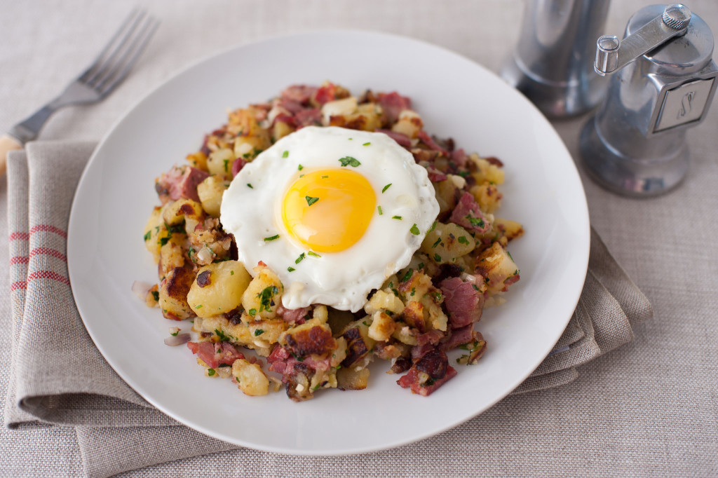 A dish that calls to the hearts and stomachs of the meat-and-potatoes crowd, breakfast hash is thrillingly easy to cook and deeply satisfying to eat. Because a key ingredient in hash is meat that is already cooked, it’s perfect for leftovers and friendly for home cooks. (So feel free to try the recipe with roast beef instead of the pastrami, or even leftover pork and chicken.) Here, in classic form, the dish also includes potatoes for starch and onions for sweetness. A couple of lightly fried eggs on top will provide a sauce that brings all the flavors together.