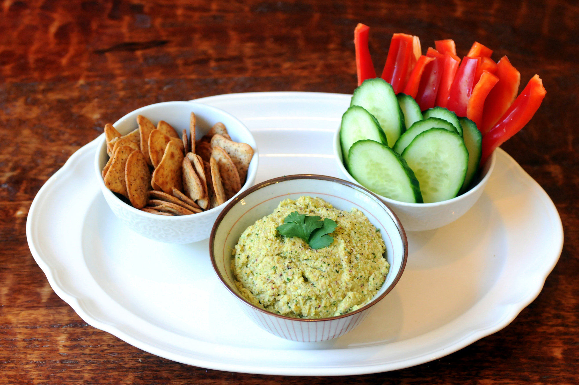 • Rice crackers, chips or cucumber and celery sticks, for serving