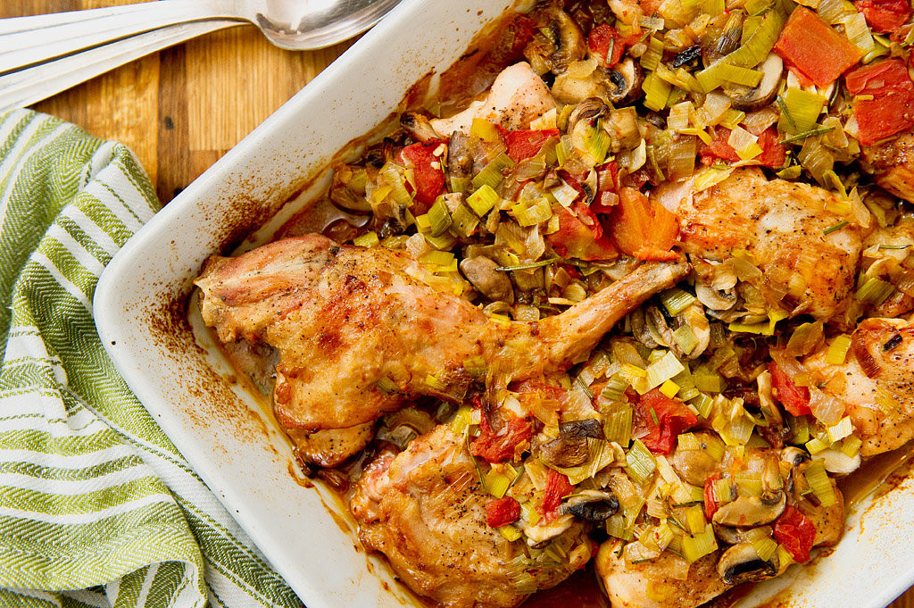 - Pour off the used oil, wipe out the pan and add 2 tablespoons fresh oil. Heat to medium-high, add the onions and cook till soft, about 5 minutes. Add the leek, garlic, rosemary and mushrooms. Season generously with salt and pepper, and add red pepper flakes to taste. Cook for 2 minutes more, stirring.
