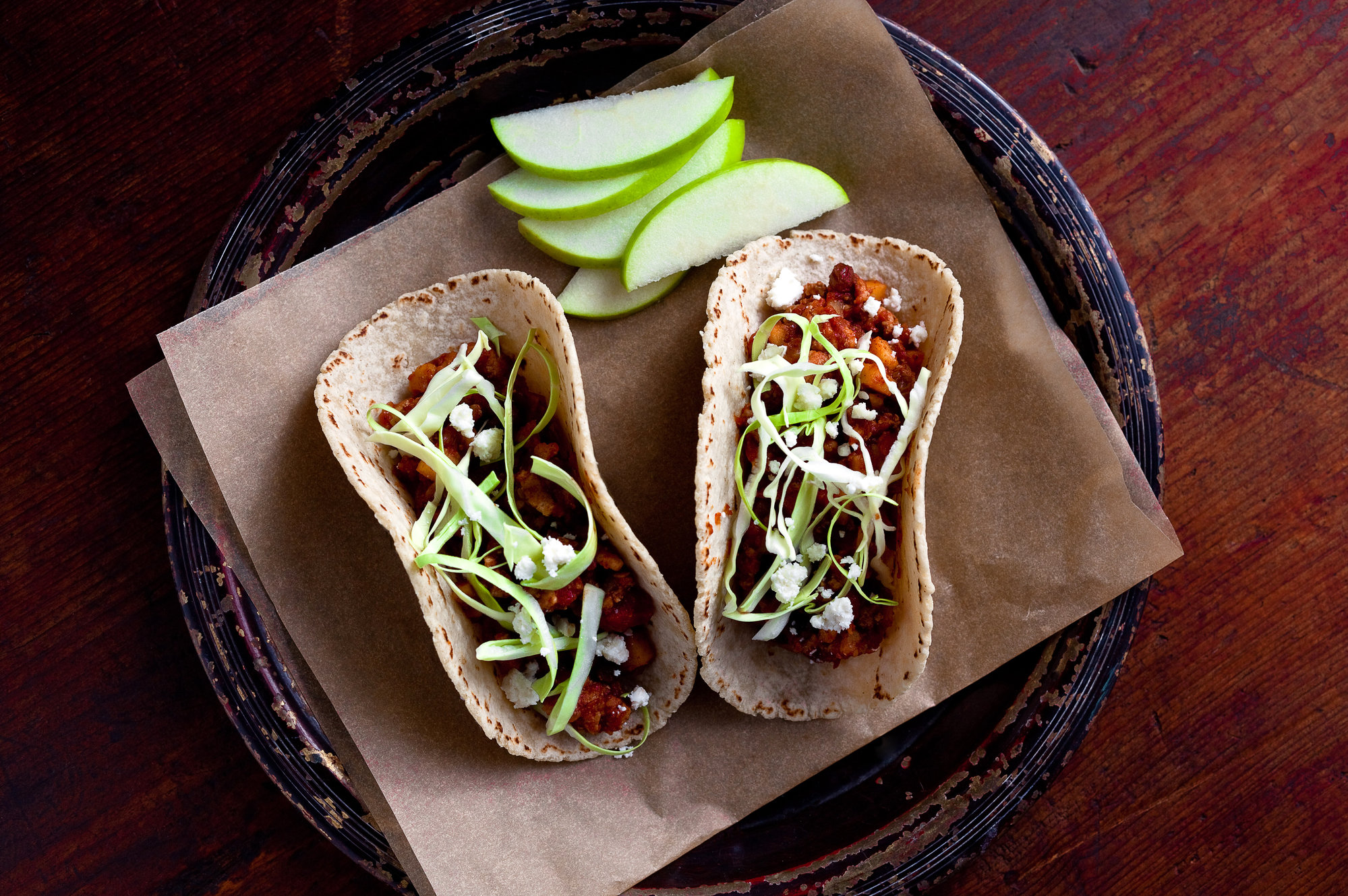 - Cover the cabbage with cold water and let sit for 5 minutes. Drain and spin dry. Toss with the remaining vinegar. Heat the tortillas and spoon the picadillo onto each one. Top with shredded cabbage, garnish with salsa and crumbled queso fresco if desired, and serve.