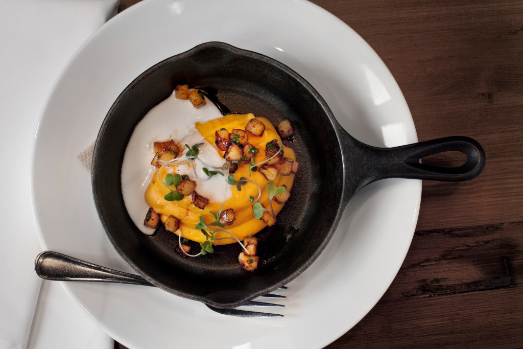 The chile in this dish balances the sweetness of the potatoes, and the butter makes everything richer and more opulent. Chef Hugh Acheson says, “I left off the little marshmallows because I think we need to evolve…and my dentist friends would get mad at me.” You can garnish sweet potatoes with a variety of things from cooked apples, to more cooked chiles, to hazelnuts or even a dollop of yogurt.