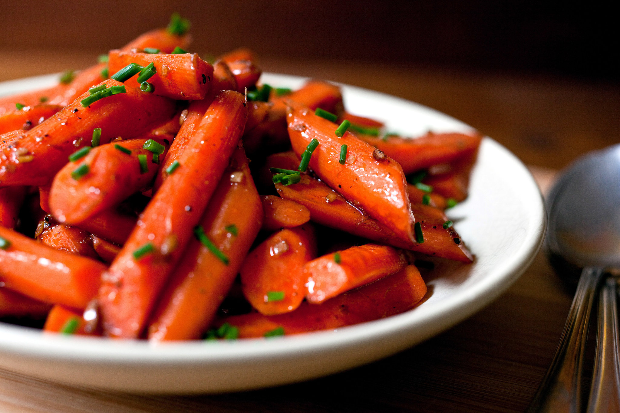 - Heat a 14-inch flat-bottomed wok or a 12-inch skillet over high heat until a drop of water evaporates within a second or two when added to the pan. Swirl in the oil by adding it to the sides of the pan and swirling the pan, then add the ginger and stir-fry no more than 10 seconds, until the ginger is fragrant. Add the carrots and stir-fry for 1 minute, until the carrots are well coated in oil and ginger. Swirl the vinegar mixture into the wok, sprinkle with the sugar mixture, and stir-fry for 1 minute, until the carrots are crisp-tender. Immediately transfer to a serving bowl and sprinkle with chives.