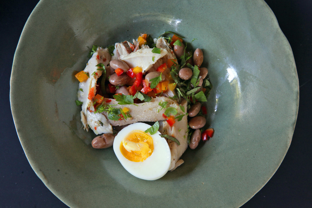A recipe for a salad of slow-cooked albacore and fresh shell beans.