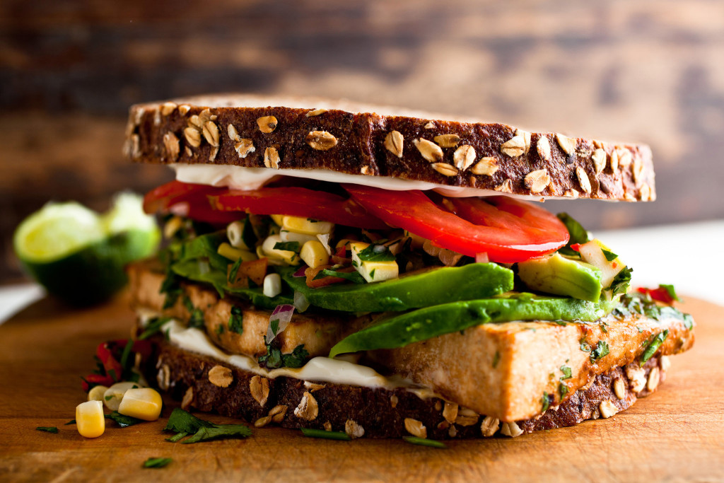 - For each sandwich, spread a thin coating of Vegenaise on each slice of bread. Top the bottom slice with a slice of baked marinated tofu. Fan thin slices of avocado over the tofu. The avocado helps the relish adhere to the sandwich. Top the avocado with relish – they use about 3/4 cup at FOOD, but 1/2 cup will work – and in season top the relish with slices of heirloom or good roma tomatoes. Top with the second slice of bread. Serve with a baby greens mix that includes some arugula. Some of this can go on the sandwich.
