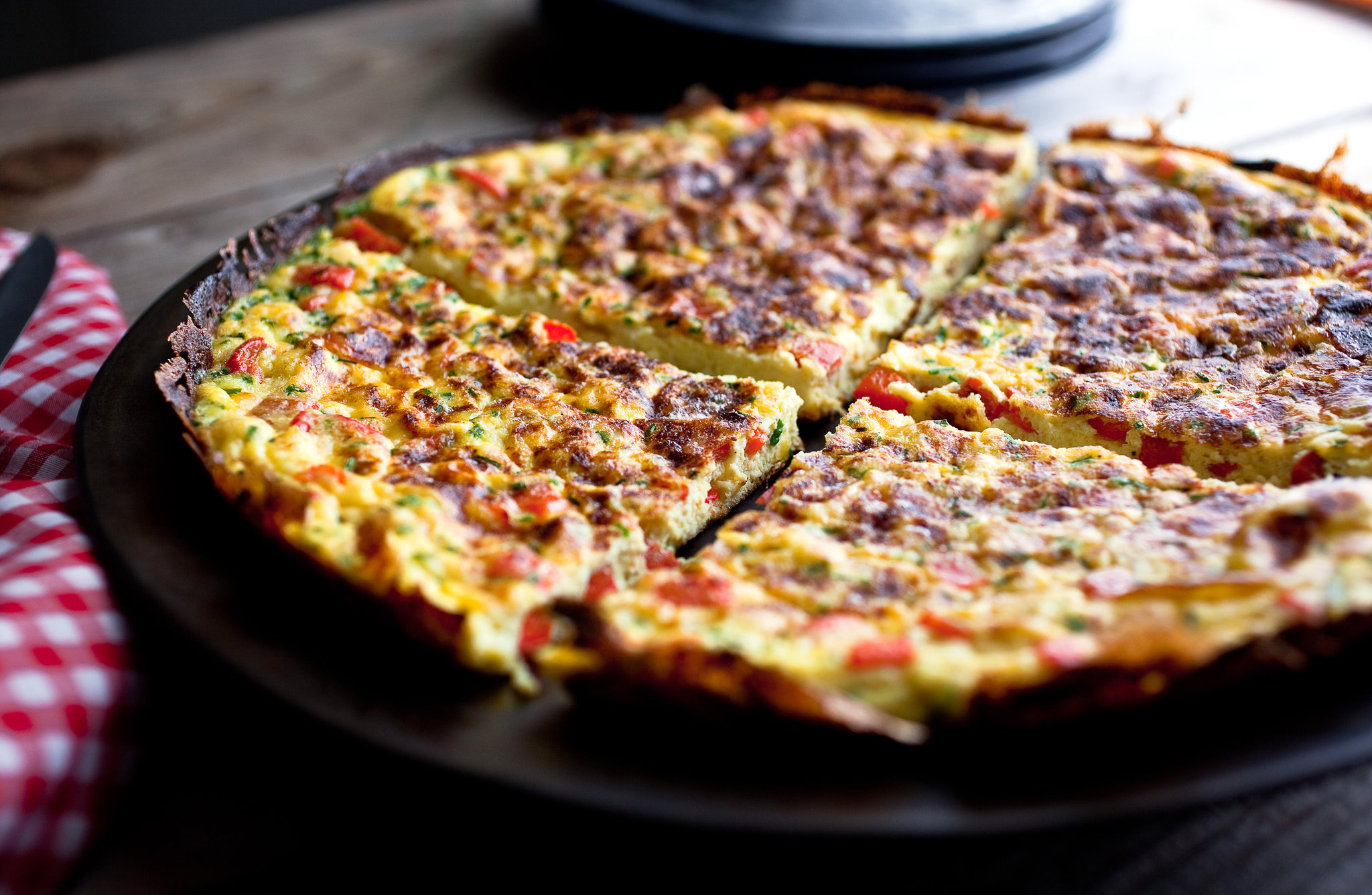 - Beat the eggs in a large bowl. Whisk in the ricotta, salt (about 1/2 teaspoon) and freshly ground pepper to taste. Stir in the chives and red pepper and garlic mixture. Clean and dry the pan and return to the burner, set on medium-high. Heat the remaining tablespoon of olive oil in the skillet. Hold your hand above it; it should feel hot. Drop a bit of egg into the pan, and if it sizzles and cooks at once, the pan is ready. Pour in the egg mixture. Swirl the pan to distribute the eggs and filling evenly over the surface. Shake the pan gently, tilting it slightly with one hand while lifting up the edges of the frittata with a spatula in your other hand, to let the eggs run underneath during the first few minutes of cooking.