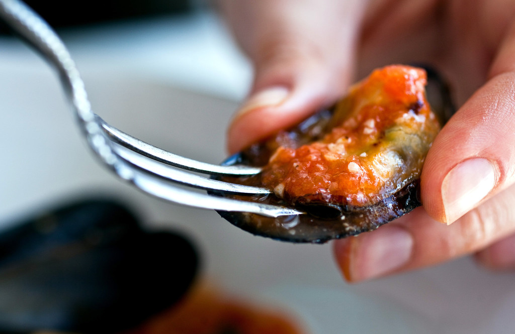 Of all of the mussel recipes I tested this week, this was the hands-down favorite. Inspired by a spicy mussel dish I enjoyed at Bar Pilar, a tapas bar in Valencia, years ago, this dish is made special by the crunchy almond and hazelnut picada added after the mussels are steamed.