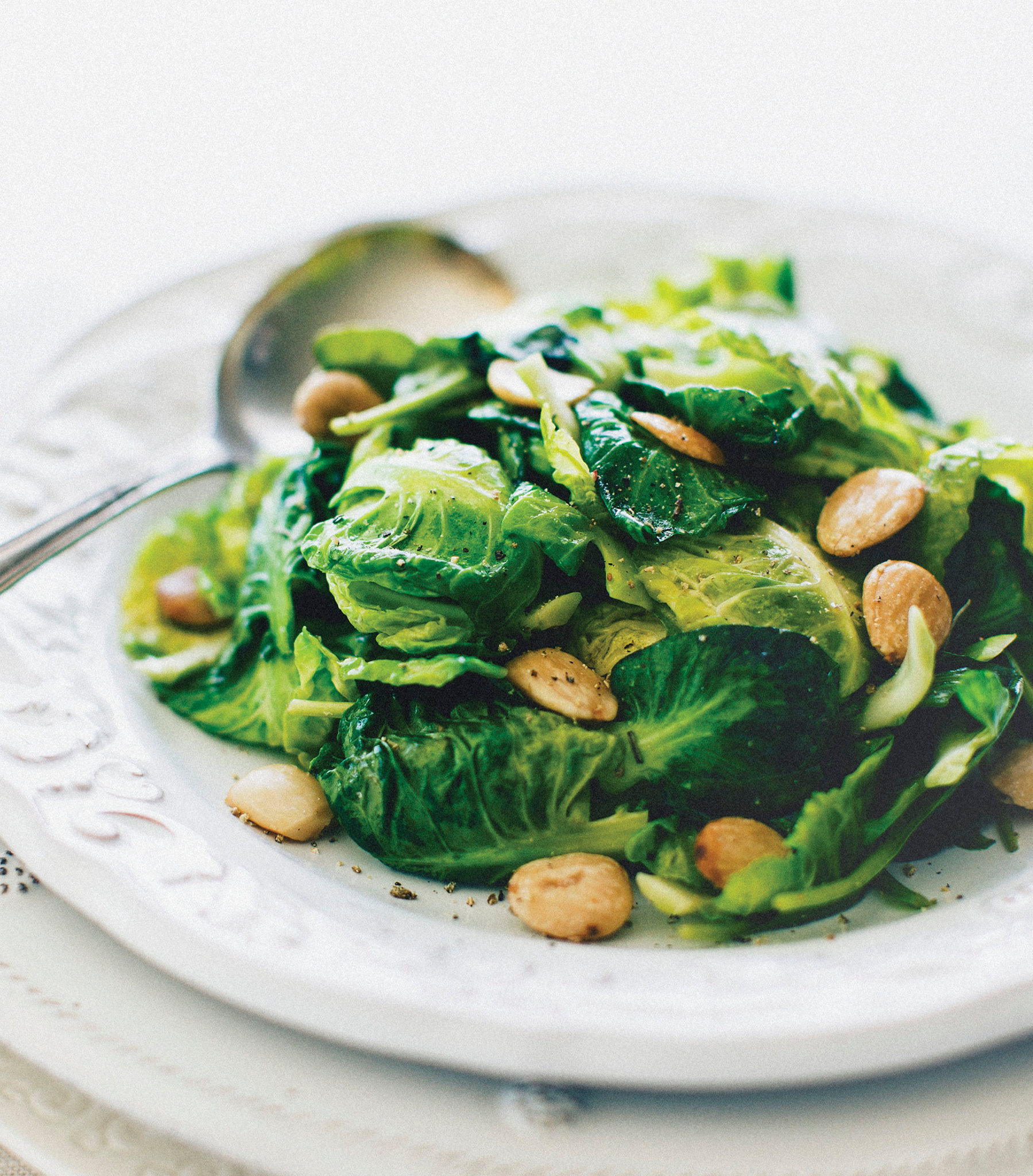 While Ms. Forte loves whole roasted brussels sprouts, she knows many of her guests don’t like the woodsy center. “There are lovers and haters of brussels sprouts,” she says. “I find that when you just use the leaves, everyone enjoys them. It’s just a more likeable dish.”