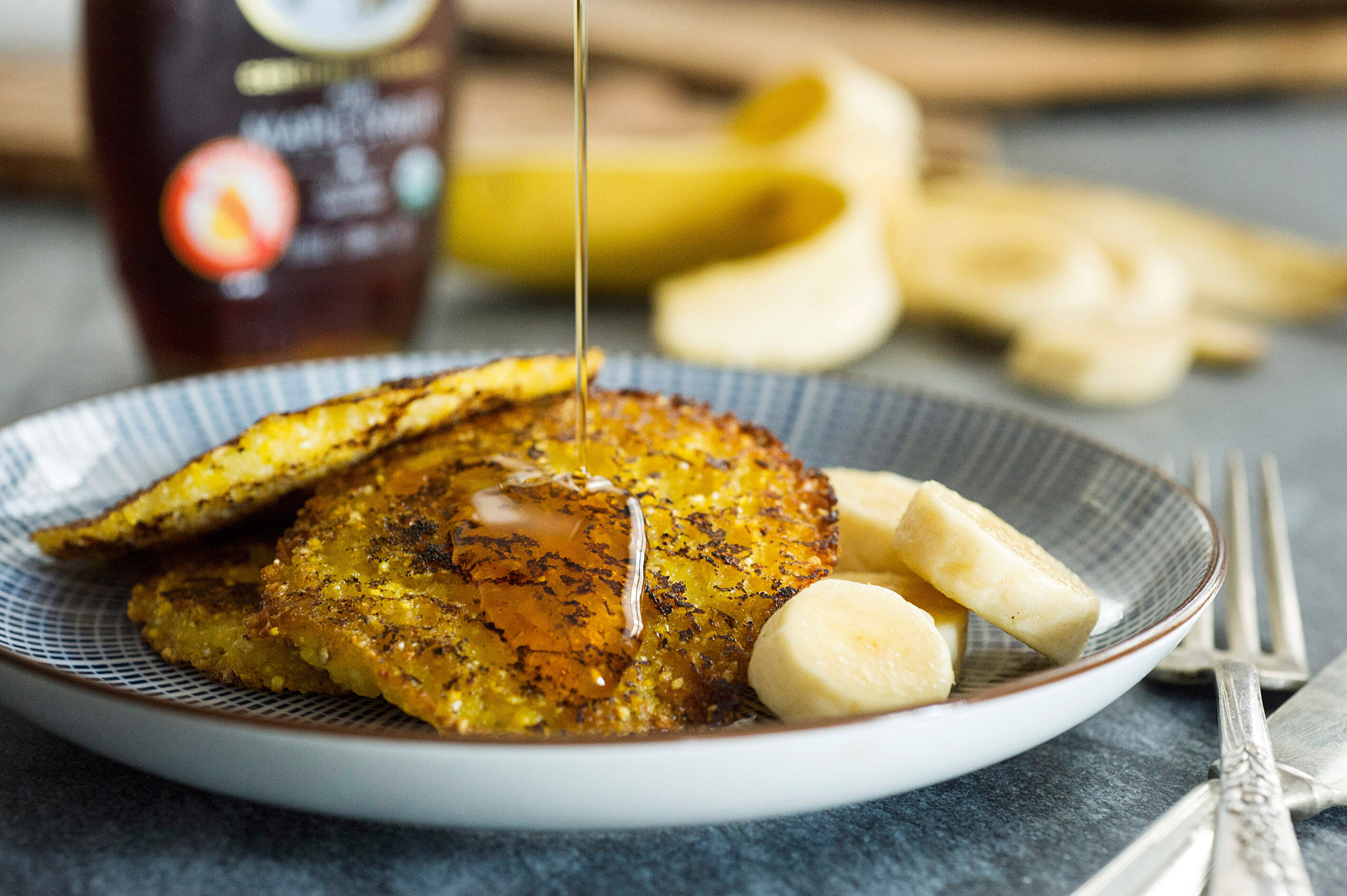 - Put a large skillet or griddle, preferably cast-iron or nonstick, over medium heat. When a few drops of water dance on the surface, add a thin film of remaining oil. Working in batches, spoon in batter, making any size cakes you like; they will be thinner than pancakes. Cook until bubbles appear and burst on the tops, and the undersides are golden brown, 3 to 5 minutes; turn and cook on other side until golden, another 2 or 3 minutes. Transfer to warm oven and continue with next batch, adding more oil to skillet if necessary. Serve warm with syrup, jam or compote.