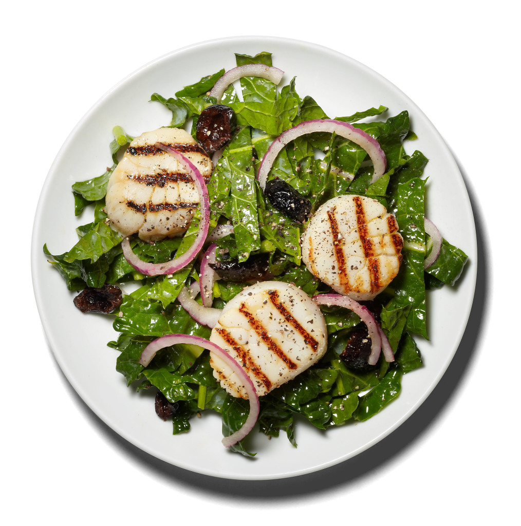 3. Brush the scallops with olive oil, sprinkle with salt and pepper, and grill until they’re brown on the bottom and release easily from the grill, 2 to 3 minutes.