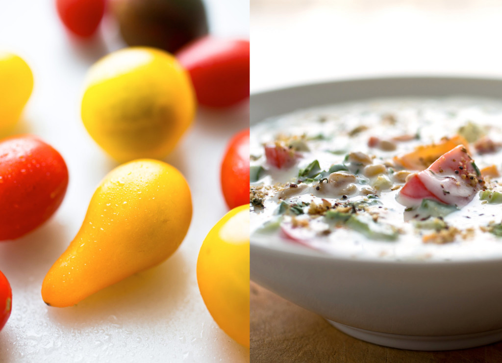 This is the kind of meal I could eat every day for lunch and never tire of. Cold summer soups welcome the addition of chewy whole grains. On a hot day in early summer, a soup like this one is both refreshing and substantial.