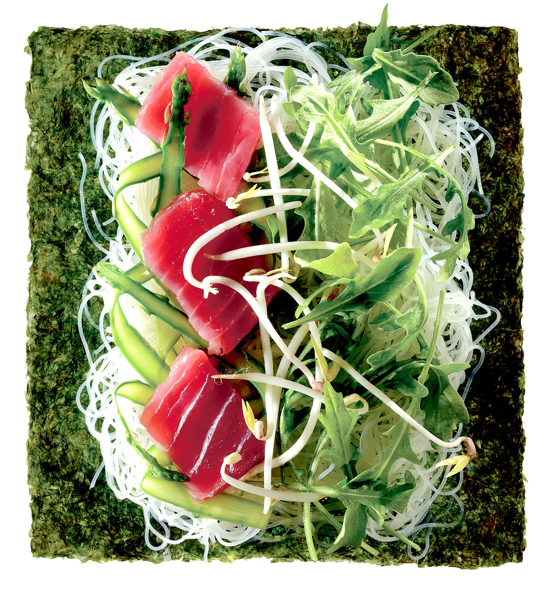 This master recipe allows you to mix and match your wrappers and fillings. Some tips: Don’t overstuff. Rice paper is pliable, but it will tear if you stretch it too thin. And remember that before you even start to stuff, rice paper can be tricky. Soak a sheet of it briefly (10 seconds is about right) in a dish or skillet of hot water (110 degrees or so). Put it on a paper or dish towel so it doesn’t stick, then fill and roll as tightly as you can, folding in the sides like a burrito. If you’re using nori, spritz the sheets all over with a little water before you fill them; it will soften them up enough to roll without much hassle.